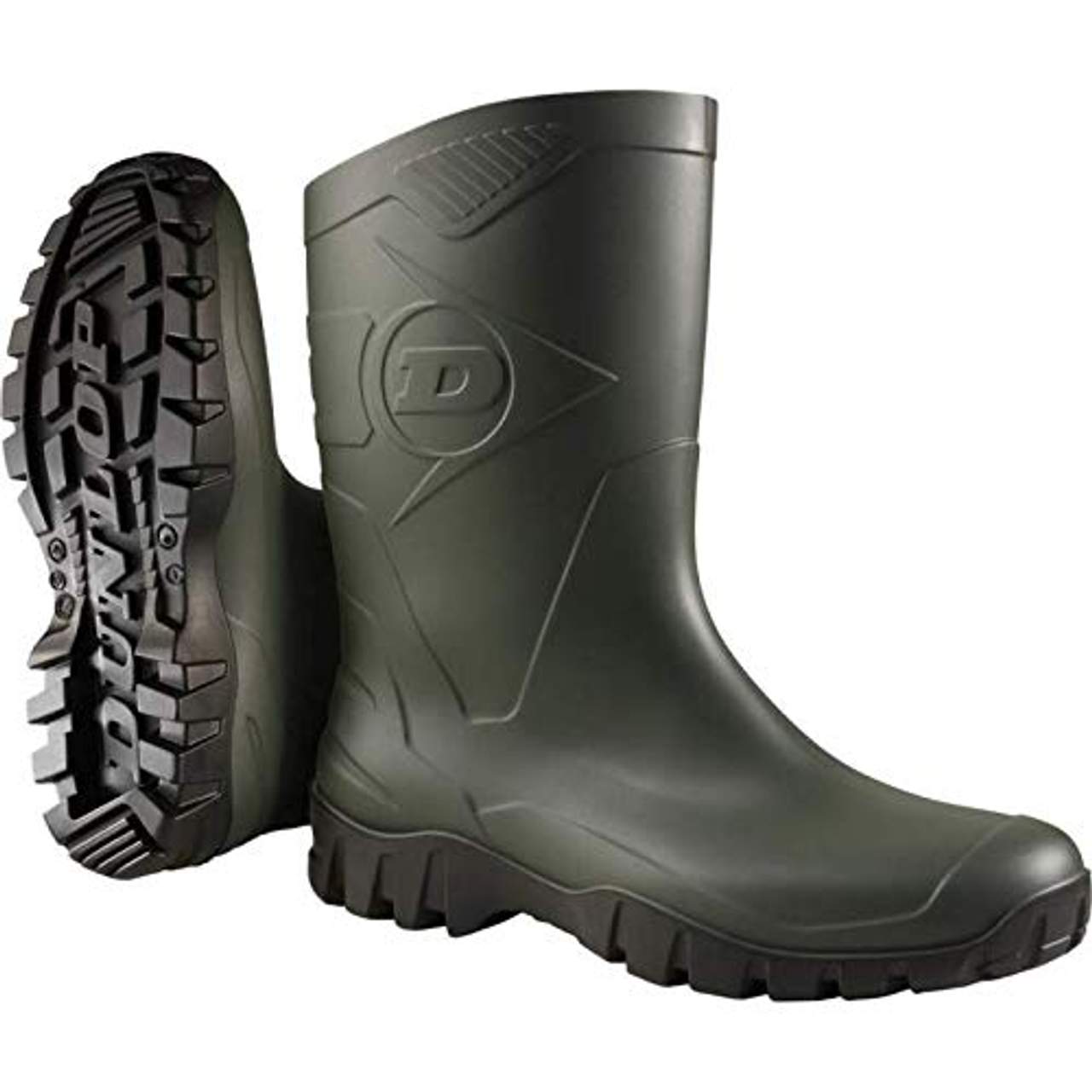 - Stilvolles Design: Die Dunlop Dee Gummistiefel sind in klassischem Dunkelgrün mit schwarzer Sohle gehalten und lassen sich so stilvoll mit jedem Arbeitsoutfit kombinieren.