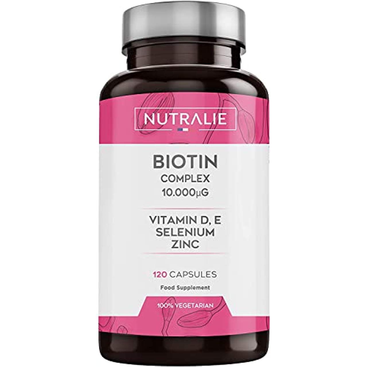NUTRALIE Biotin 10.000 mcgBiotin Hochdosiert Haar Vitamine: optimale Konzentration von Biotin in Kombination mit Selen, Zink sowie den Vitaminen D und E, um alle Vorteile zu nutzen. Biotin von Nutralie ist eines der umfassendsten Produkte, das gemäß den strengsten Qualitätskontrollen hergestellt wird. Haare, Haut UND Nägel: Biotin trägt zur Erhaltung normaler Haare bei. Darüber hinaus tragen Biotin und Zink zur Erhaltung normaler Haut bei.Vitamin D hat eine Funktion bei der Zellteilung. Vitamin E trägt dazu bei, die Zellen vor oxidativem Stress zu schützen. Biotin Zink & Selen: 10.000 µg in jeweils 120 Kapseln aus 100% Gemüse. Zink und Selen tragen zu einer normalen Funktion des Immunsystems bei. Haarwuchsmittel Nutralie Qualität: Unser Biotin wurde nach einem kontrollierten Verfahren entwickelt und durch strenge Qualitätsprotokolle zertifiziert, und dies während der gesamten Produktion.Biotine von Nutralie ist ein 100% vegetarisches Produkt.