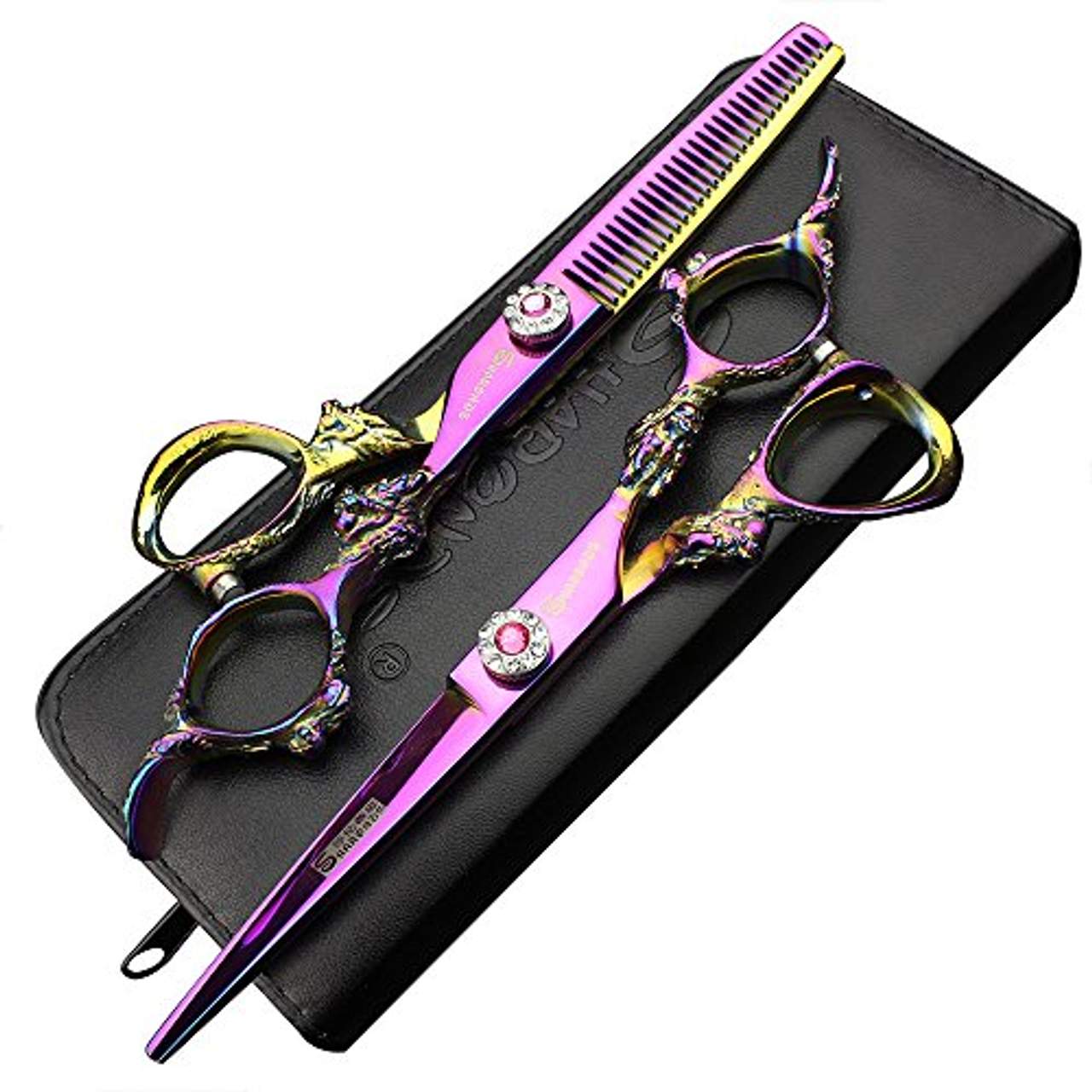 - Präzises Schneiden: Das Sharonds lila 17,5 cm Haarschere friseurschere exquisite High-End-Haarscheren-Set ist mit einer scharfen und präzisen Schneide entworfen, die einen sauberen und genauen Schnitt für alle Haartypen bietet.