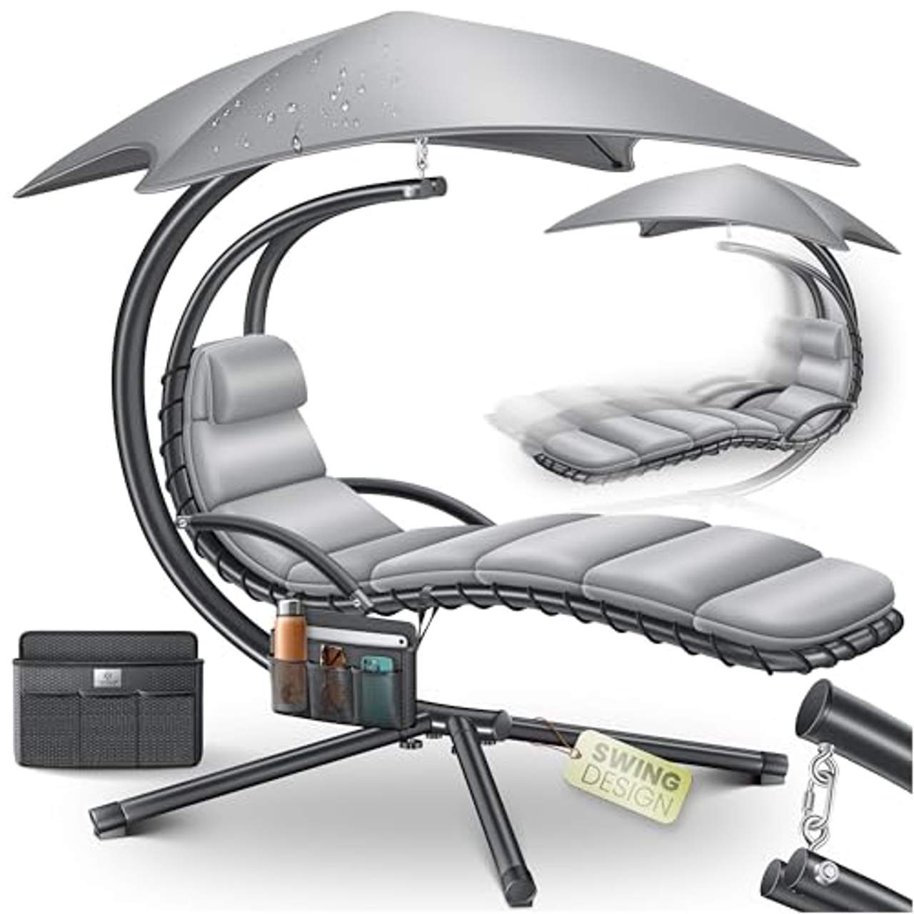 Das Design konzentriert sich auf eine sanfte Schaukelbewegung, um dein Entspannungserlebnis zu verbessern. Es gibt jedoch keine Hinweise darauf, dass die Schaukelbewegung einstellbar oder arretierbar ist, so dass du das natürliche Schaukeln genießen kannst, wie es vom Design vorgesehen ist.