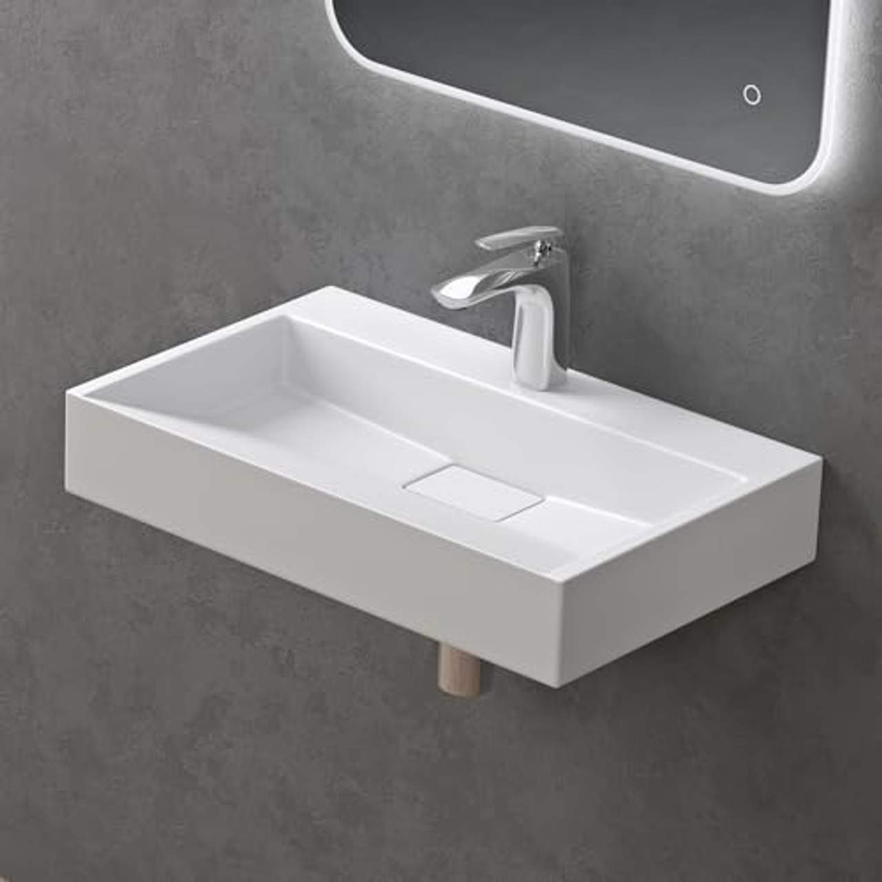 - Elegantes Design: Das kantige Design dieses Hänge-/Aufsatzwaschbeckens verleiht Ihrem Bad einen Hauch von Raffinesse und Eleganz und schafft einen Blickfang, der sich von der Masse abhebt.