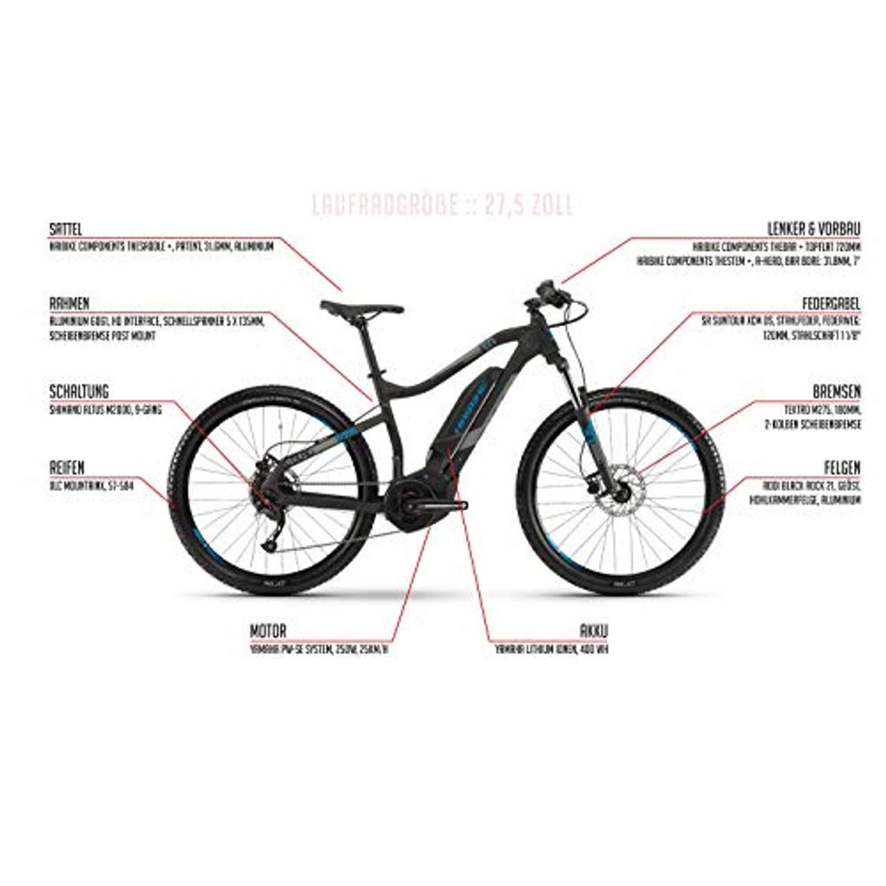 27.5 Zoll Haibike Sduro HardSeven 1.0 E Bike Größe: SSeit 1995 entwickelt Haibike in Deutschland mit Leidenschaft Bikes und greifen auf die beinahe 100jährige Erfahrung Ihrer Muttergesellschaft WinoraGroup zurück. Dabei haben Sie das einzigartige Glück, überlegtes Unternehmertum mit der Dynamik und dem Mut eines Start-Ups verbinden zu können.Eigenschaften:Das HardSeven mit wendigen 27,5" Laufrädern für Touren in leichtem Gelände ist zusätzlich auch mit breiter und komfortabler Plus-Bereifung erhältlich. Sie haben außerdem die Wahl zwischen hochwertigen, leichten Aluminium-Rahmen und verschiedenen Antrieben.Merkmale:RAHMEN: Aluminium 6061, HD Interface, Schnellspanner 5 x 135mm, Scheibenbremse Post MountMOTOR: Yamaha PW-SE System, 250W, 25km/hDISPLAY: Yamaha Side Switch 1.7" LCD, 7 FunktionenAKKU: Yamaha Lithium Ionen, 400 WhLADEGERÄT: Yamaha Schnellladegerät 4AGABEL: SR Suntour XCM DS, Stahlfeder, Federweg: 120mm, Stahlschaft 1 1/8"SCHALTUNG: Shimano Altus M2000, 9-GangSCHALTHEBEL: Shimano Altus M2000, RapidfireZAHNKRANZ (HINTEN): Shimano HG200, 11-36 ZähneKETTE: KMC X9KETTENBLATT: 38, StahlKETTENFÜHRUNG: Nylon directmountBREMSHEBEL: Tektro M275, AluminiumBREMSE (VORNE): Tektro M275, 180mm, 2-Kolben ScheibenbremseBREMSE (HINTEN): Tektro M275, 180mm, 2-Kolben ScheibenbremseREIFEN: XLC MountainX, 57-584FELGEN: Rodi Black Rock 21, geöst, Hohlkammerfelge, AluminiumVORDERRADNABE: Haibike Components TheHub +HINTERRADNABE: Haibike Components TheHub +SPEICHEN: Sapim Leader, SchwarzLENKER: Haibike Components TheBar + Topflat 720mmGRIFFE: Haibike MTB GriffeVORBAU: Haibike Components TheStem +, A-Head, Bar bore: 31.8mm, 7°STEUERSATZ: A-Head Tapered, KugellagerSATTEL: Haibike Components TheSaddleSATTELSTÜTZE: Haibike Components The Seatpost +, Patent, …