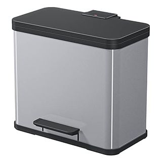 Mit seinem Gehäuse aus rostfreiem Stahl, das Fingerabdrücke verhindert, sieht dieser Mülleimer nicht nur elegant aus, sondern bleibt auch sauber und frei von unschönen Flecken. Die langlebigen Materialien, aus denen er besteht, machen ihn leicht zu reinigen und sorgen für Stabilität. Der Mülleimer wird mit drei herausnehmbaren Inneneimern aus schwarzem Kunststoff geliefert, mit denen sich die verschiedenen Abfälle leicht trennen lassen. Diese Inneneimer haben ein Gesamtfassungsvermögen von 54 Litern - ein 25-Liter-Mitteleimer, der mit einer Kunststoffstange geteilt werden kann, ein 25-Liter-Innenmülleimer und ein 4-Liter-Bioabfallbehälter mit Tragegriff und Deckel.