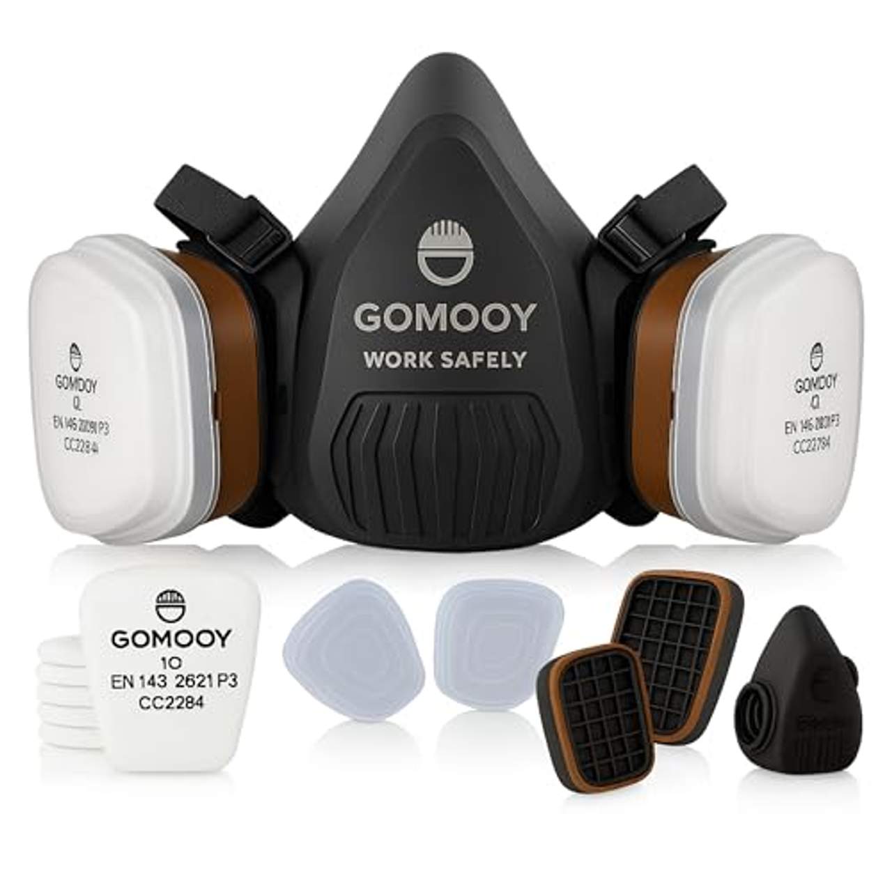 Umfassender Atemschutz mit gomooy Atemschutzmaske Gasmaske Doppelfilter 8 Ersatzfilter