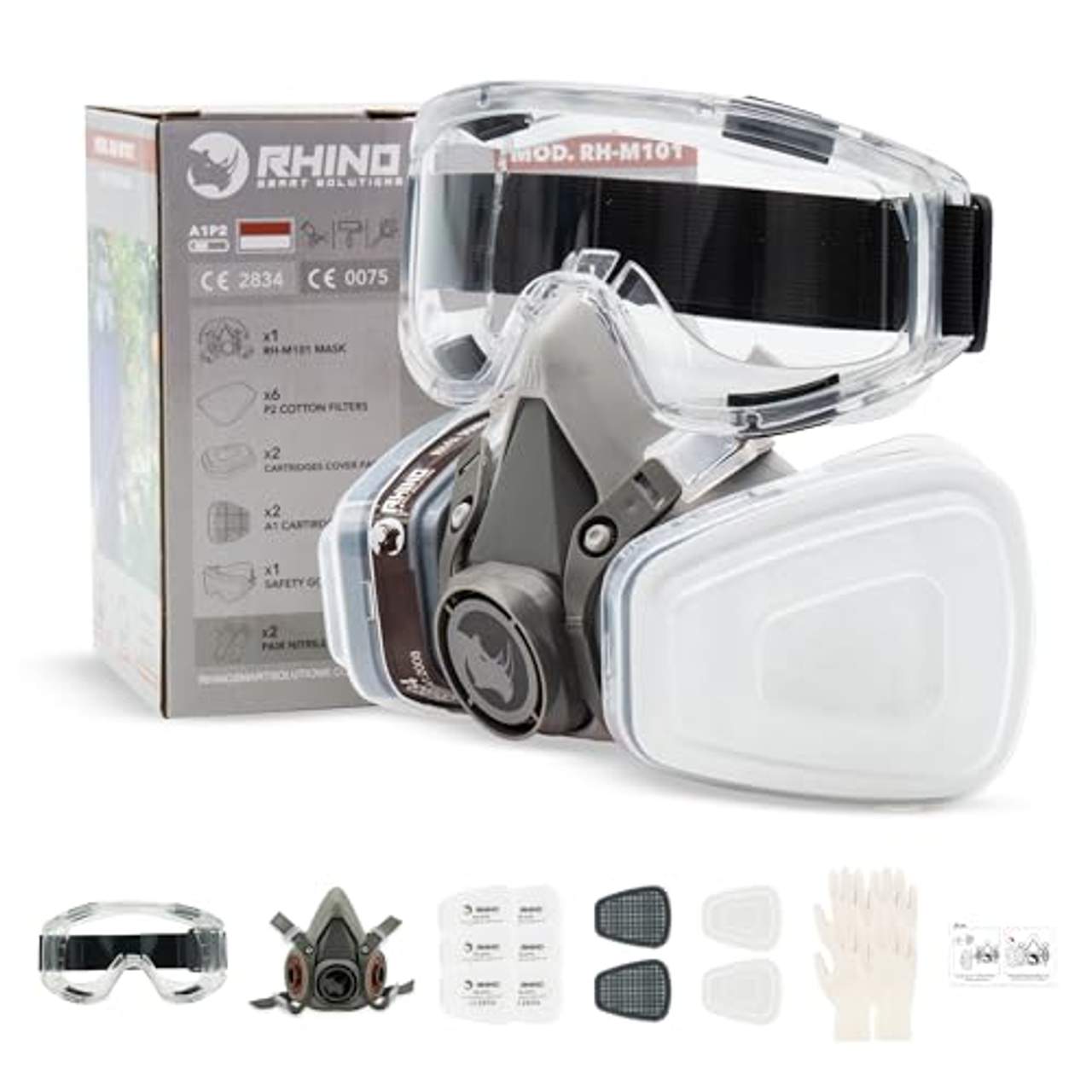 - Komplettes Schutzset: Der RHINO Smart Solutions Gesichtsschutz wird als umfassendes Paket geliefert, das nicht nur die Atemschutzmaske, sondern auch wichtiges Zubehör wie sechs Filter aus 100 % Baumwolle, zwei Patronen, Patronenkappen, Handschuhe und eine Antibeschlag-/Antikratzbrille enthält. Diese All-in-One-Lösung vereinfacht die Vorbereitung auf gefährliche Aufgaben, da alles, was benötigt wird, in einem Kauf enthalten ist. Die Benutzer profitieren von den hochwertigen Komponenten, die nahtlos zusammenarbeiten und sicherstellen, dass sie für die verschiedenen industriellen Herausforderungen angemessen ausgerüstet sind und gleichzeitig optimale Sicherheitsstandards einhalten.
