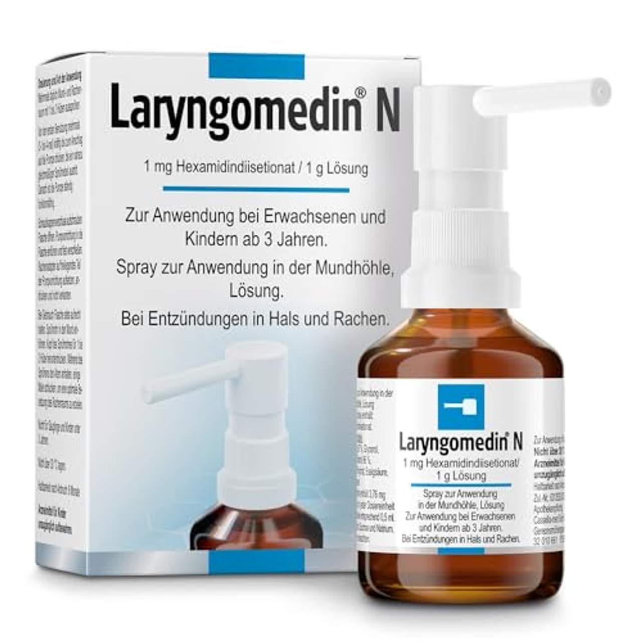 Klosterfrau Laryngomedin N SprayUnterstützende Hilfe bei bakteriellen Entzündungen in Hals und Rachen Im Gegensatz zu vielen anderen Hals- und Rachensprays erfüllt Laryngomedin N die meisten Voraussetzungen, um die Symptome von bakteriellen Entzündungen in diesem Bereich deutlich lindern zu können. Der Spezial-Sprühkopf ermöglicht eine gezielte Applikation bis tief in den Rachen. Er wirkt nicht nur bakterio-, sondern auch fungistatisch und hindert damit sowohl bakterielle Erreger als auch Pilze an der weiteren Vermehrung:Die Ausbreitung kann abgeschwächt werden. Laryngomedin N ist antibakteriell und ist gut verträglich. direkte Wirkung durch Erreichung tiefer Rachenregionen gute Verträglichkeit – gutes Sicherheitsprofil Spezial-Sprühkopf für eine gezielte Applikation angenehm im Geschmack – ohne Brennen frisches, kühlendes Gefühl in Mund- und Rachenraum geeignet für Kinder ab 3 Jahren Dosierung: Mehrmals täglich Mund und Rachenraum mit ein bis zwei Sprühstößen aussprühen. Während des Sprühens den Atem anhalten und einige Male schlucken, um eine optimale Benetzung auch des tiefen Rachenraumes zu erzielenSonstige Bestandteile: Sucroselösung 67 %, Glycerol, Pfefferminzöl, Ethanol 96 %, Natriumacetat-Trihydrat, Essigsäure, gereinigtes Wasser.Gegenanzeigen: Laryngomedin N darf nicht angewendet werden bei bekannter Kontaktallergie gegen Hexamidin oder verwandte Amidine sowie beiÜberempfindlichkeit (Allergie) gegenüber Hexamidin, Pfefferminzöl oder einem der sonstigen Bestandteile des Arzneimittels. Laryngomedin N soll bei Säuglingen und Kindern unter 3 Jahren nicht angewendet werden, es sei denn, der Arzt hat es ausdrücklich gestattet. Nebenwirkungen: Allergische Reaktionen der Mund- und Rachenschleimhaut sind möglich. Bei entsprechend sensibilisierten Patienten können durch Pfefferminzöl-Überempfindlichkeitsreaktionen (einschließlich Atemnot) ausgelöst werden. Bei der Anwendung von Halssprays kann es generell zu Halskratzen oder Hustenanfällen kommen.Pflichttext: Laryngomedin N Wirkstoff: Hexamidindiisetionat. Anwendungsgebiete: Laryngomedin N wird angewendet zur unterstützenden Behandlung von bakteriellen Entzündungen der Schleimhaut von Mund und Rachen. Warnhinweise: Enthält 1,0 Vol.-% Alkohol, Pfefferminzöl und Sucrose (Zucker). Packungsbeilage beachten! Zu Risiken und Nebenwirkungen lesen Sie die Packungsbeilage und fragen Sie Ihren Arzt oder Apotheker. Bildquelle: Klosterfrau-Gesundheitsservice