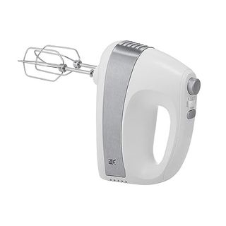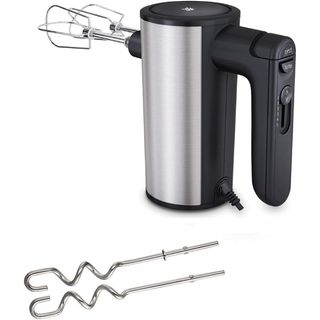 - Ausstattung: Zur Standardausrüstung jedes Handmixers gehören zwei Rührbesen (Quirle) und zwei Knethaken, meist aus Edelstahl (Cromargan).Sie sind spülmaschinenfest für eine einfache Reinigung. Einige Modelle werden als Set mit zusätzlichen Aufsätzen, wie Zerkleinerer, Stabmixer mit Messbecher oder einem Schneebesen, der mehr Luft in die Rührmasse wirbelt und dadurch luftigere Cremes oder Eischnee ermöglicht, angeboten.