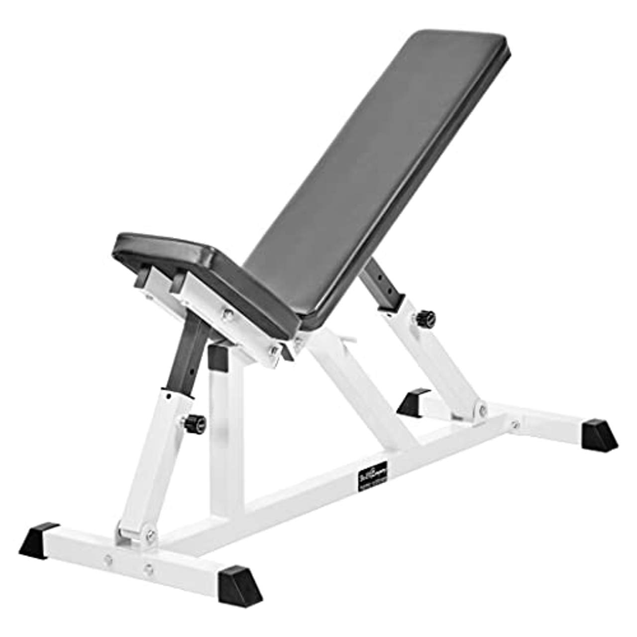 Die Rahmenfarbe dieser Fitnessbank ist weiß, was ihr einen eleganten und modernen Look verleiht. Die Polsterung ist schwarz und bietet sowohl Stil als auch Komfort beim Training.