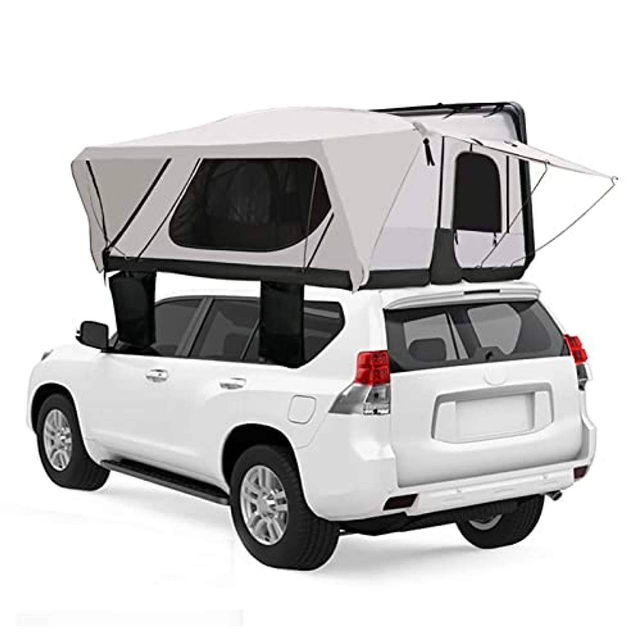 Das „3-4 Personen Schiebedach-Dachzelt wasserdichtes Hartschalen-Dachzelt“ verfügt über mehrere bemerkenswerte Eigenschaften: eine robuste ABS-Hartschalenkonstruktion mit wasserdichtem, PU-beschichtetem Oxford-Gewebe, eine verstärkte Aluminiumlegierung/ABS-Basis für Witterungsbeständigkeit, Eignung für verschiedene Fahrzeuge (SUVs, LKWs) und praktische Einsatzmöglichkeiten wie Umkleidekabine oder Sonnenschirm. Diese Eigenschaften machen ihn zu einer ausgezeichneten Wahl für alle, die eine zuverlässige, multifunktionale Campinglösung suchen, die den unterschiedlichsten Outdoor-Bedingungen gewachsen ist und gleichzeitig Komfort und Bequemlichkeit bietet.
