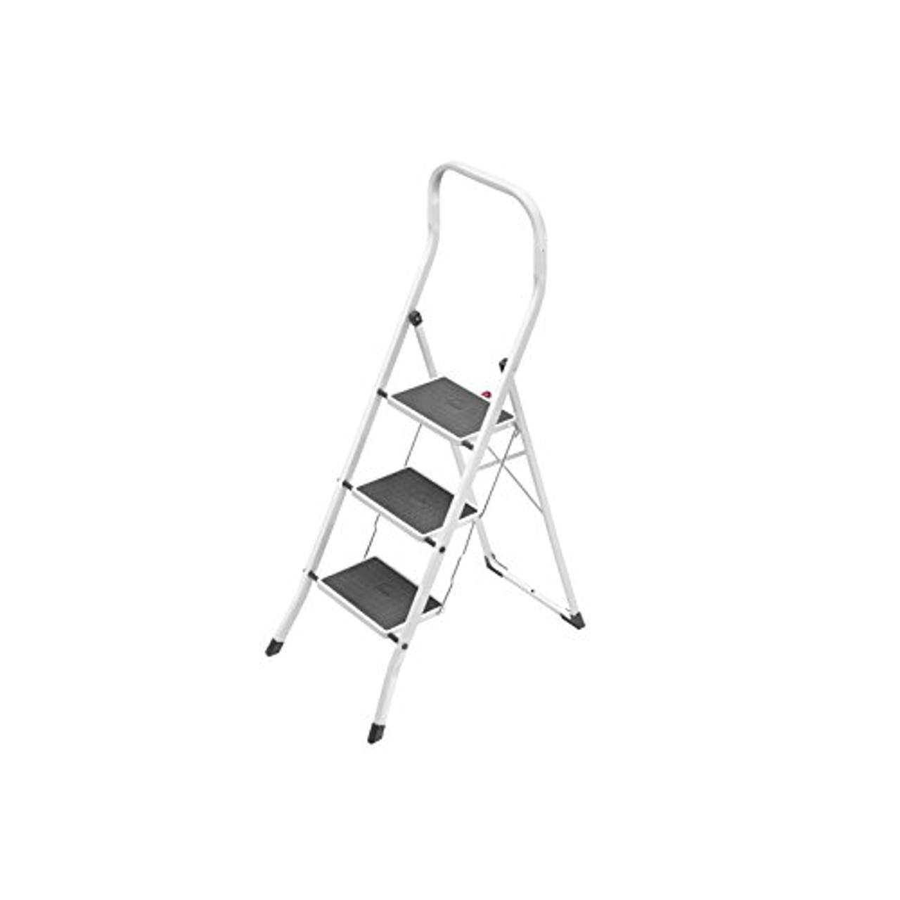 - Bequeme Benutzung: Die 3 großen Stufen mit rutschfesten Matten bieten eine bequeme Plattform für die Benutzer, während sie die Leiter benutzen, so dass es einfacher ist, Aufgaben zu erledigen, ohne sich Sorgen machen zu müssen, auszurutschen oder von der Leiter zu fallen.