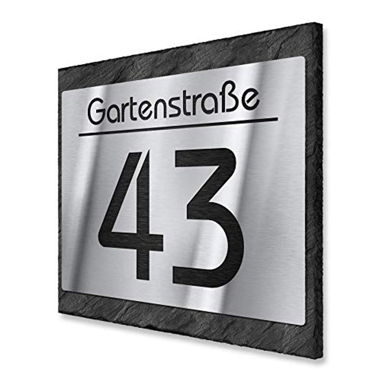 Über Metzler Hausnummer Schild Edelstahl & Natur-Schiefer