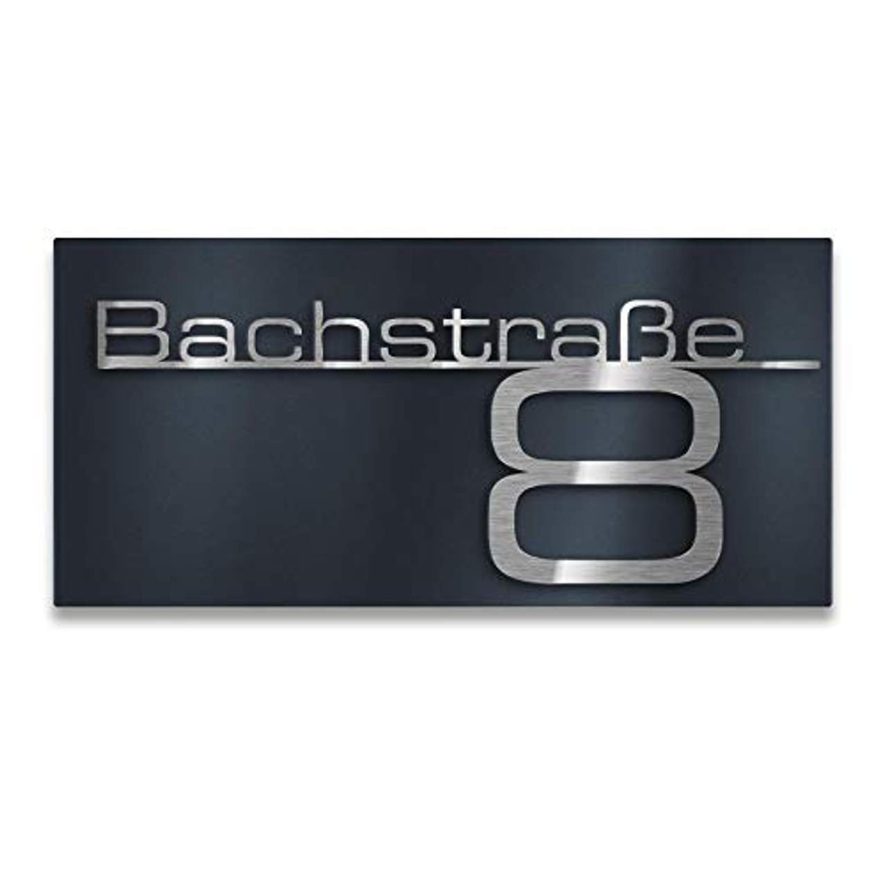 Preisvergleich: Günstigste Angebote für Metzler Hausnummern-Schild mit Straße- individueller Schriftzug aus Edelstahl