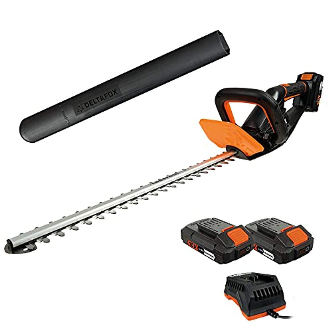 Die Produktbeschreibung der Deltafox 18V Akku Heckenschere DG-CHT 1815 unterstreicht diesen Komfort mit zwei 18 V 2.0 Ah Akkus und einem Schnellladegerät. Die Tatsache, dass dieses Modell zwei Akkus und ein Schnellladegerät enthält, hebt es von anderen Produkten in seiner Kategorie ab. Es gewährleistet einen kontinuierlichen Betrieb über längere Zeiträume und ist damit die ideale Wahl für alle, die umfangreiche Heckenschnitte durchführen müssen.