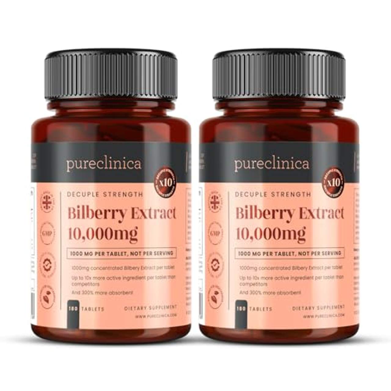 Heidelbeerextrakt 10.000 mg x 360 Tabletten" ist ein Heidelbeerextrakt der Marke „pureclinica“. Jede Tablette enthält 10.000 mg Heidelbeerextrakt und 5 mg Piperin (schwarzer Pfefferextrakt). Dies ermöglicht eine 300% bessere Absorption als bei den meisten anderen Heidelbeerpräparaten. Das Produkt enthält außerdem 125 mg Anthocyanidine, die stärksten Flavonoide der Heidelbeere, die zur Förderung der allgemeinen Gesundheit beitragen können. Zu den Sonderangeboten gehören 2 Flaschen zu einem Sonderpreis, die jeweils genügend Tabletten für 6 Monate enthalten. Die Qualität ist gesichert, da jeder Schritt der Lieferkette in millionenschweren Einrichtungen auf der ganzen Welt getestet und analysiert wurde.