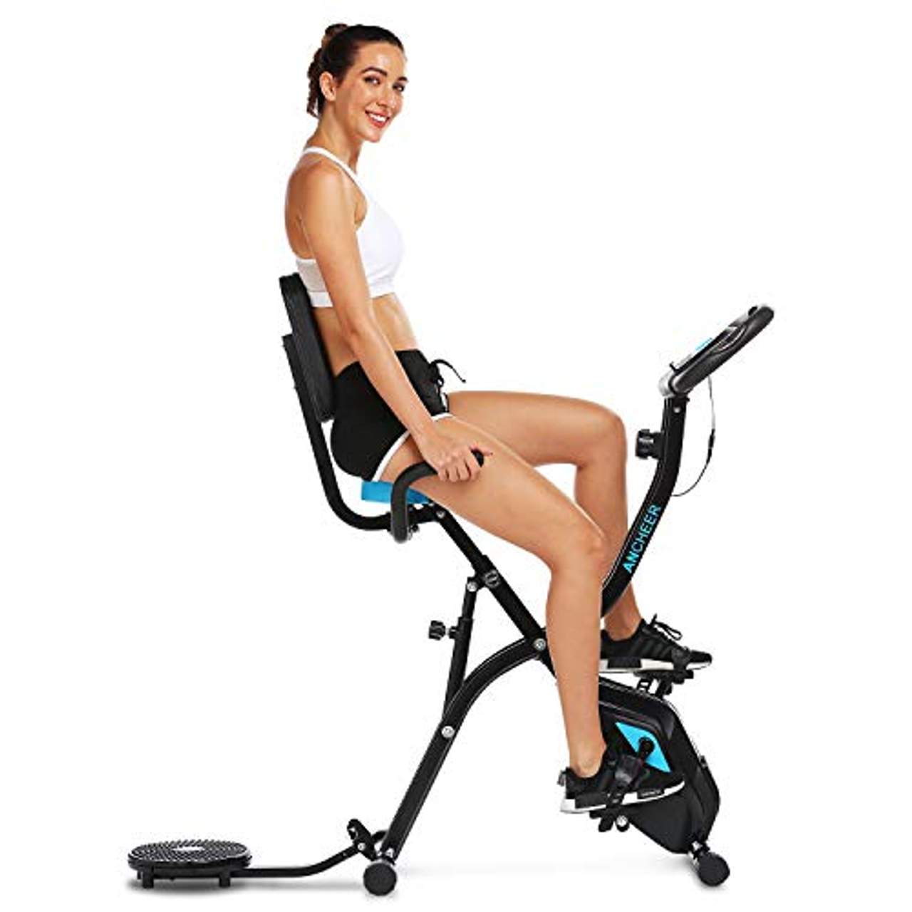 Das ANCHEER F-Bike mit APP-Anschluss bietet drei aufrechte Fitness-Modi, die hochintensive Trainingseinheiten ermöglichen. Außerdem kannst du es durch einfaches Drehen des Knopfes in ein Liegerad umwandeln, um effektive Formungsübungen zu machen. Außerdem verfügt es über eine Platte auf dem Rücksitz, die dir hilft, die perfekte Taille zu formen.