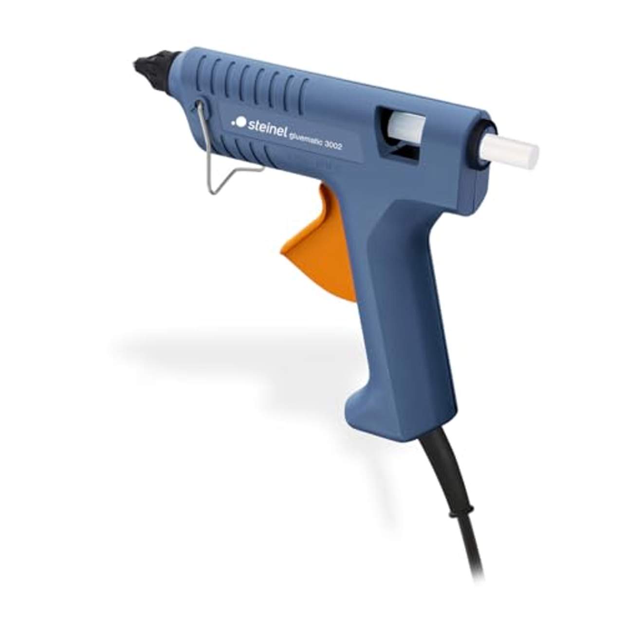 Steinel Heißklebe-Pistole Gluematic 3002Die Steinel Heißklebepistole Gluematic 3002 - Praktisch und vielseitig im Einsatz Mit der Steinel Heißklebepistole Gluematic 3002 haben Bastler und Handwerker ein vielseitiges Gerät an ihrer Seite. Die Steinel Gluematic 3002 verfügt über eine PTC gesteuerte Temperaturregelung, die gewährleistet, dass die Heißklebepistole in jeder Gebrauchsphase die notwendige Schmelzleistung erbringt.Mit dem Gerät können alle handelsüblichen Klebesticks mit einem Ø von 11 cm verarbeitet werden. Die Düsenaufsätze sind auswechselbar. Die Maße betragen 185x30x160 mm. Die Leistung in der Aufheizphase der Heißklebepistole beträgt maximal 200 W. In der Ruhephase beträgt sie 16 W und in der Arbeitsphase 45 W. Die Förderleistung der Heißklebepistole Gluematic 3002 beträgt 16g/min.