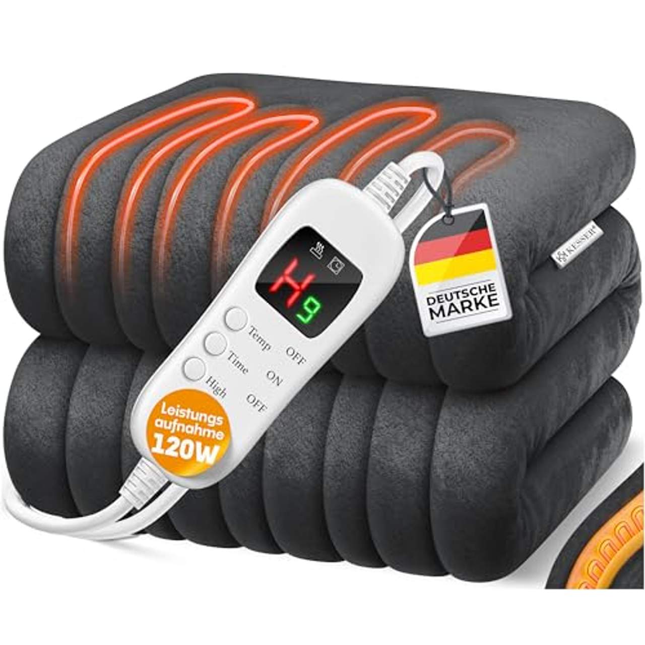 Über KESSER Heizdecke aus Plüsch 200x180cm Anthrazit TÜV SÜD GS geprüft