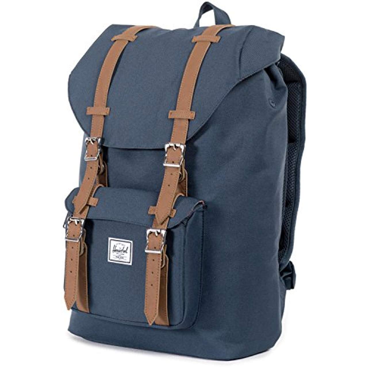 - Ausreichend Stauraum: Der Herschel Little America Mid-Volume Rucksack bietet ein großes Hauptfach mit Kordelzugverschluss, eine Vordertasche mit verstecktem Reißverschluss und Schlüsselclip, ein Medienfach mit Kabelausgang im Hauptfach und ein vollständig gefüttertes Laptopfach bis zu einer Größe von 13".