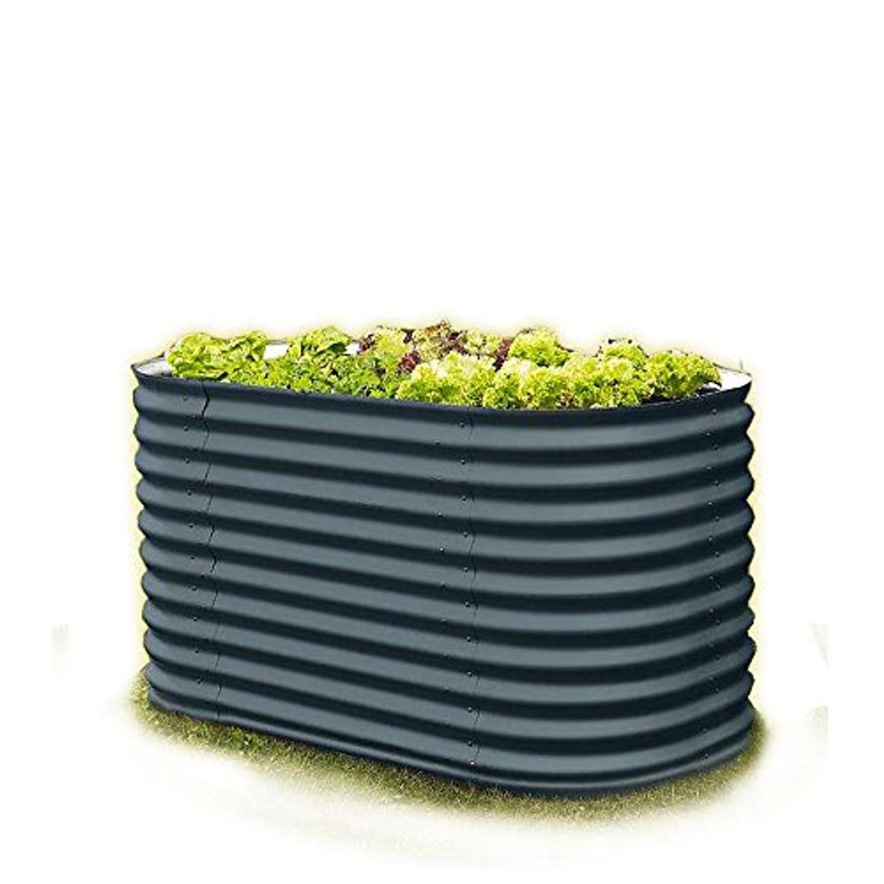 Hochbeet-Bausatz aus beschichteten Blechen Maße 162 x 82 x 86 cm (L x B x H) Grundfläche: ca. 1,2 m² Höhe: 86 cm Form: oval Farbe: granitgrau / dunkelgrau Materialstärke: 0,65 mm Angenehme Arbeitshöhe Keine Innenfolie nötig Größenangaben / Maßabweichung +/- 1 cm Geeignet für die freie Aufstellung im Garten Hohe Lebensdauer durch Zincalume (Stahlblech beschichtet mit Zink und Aluminium)Lieferung: