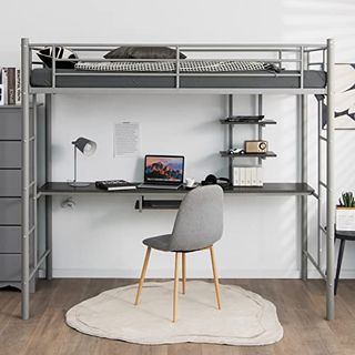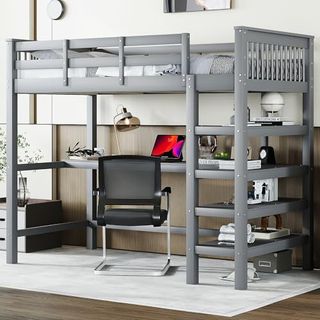 Das Hochbett von FurnitureByJDM unterscheidet sich von herkömmlichen Hochbetten durch seine unübertroffene Vielseitigkeit. Es wird als eine umfassende Einheit geliefert, die ein Einzelbett (Matratze nicht inbegriffen), Stauraum für Kleidung mit einer Innenschiene, Regale, Fächer und sogar einen Schreibtisch enthält.