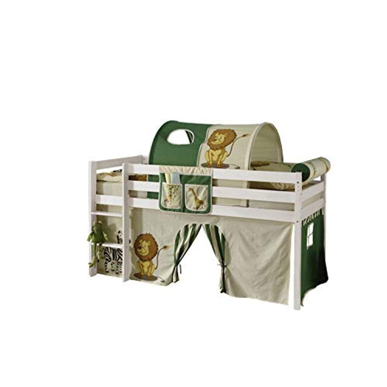 - Vielseitigkeit: Dieses Hochbett kann sowohl auf der linken als auch auf der rechten Seite montiert werden, so dass Sie die Einrichtung Ihren Bedürfnissen entsprechend anpassen können. Darüber hinaus können Sie zusätzliche Artikel wie eine Kindermatratze + Roll-Lattenrost, einen Vorhang, einen Tunnel, eine Betttasche oder eine Nackenrolle kaufen, um noch mehr Gestaltungsmöglichkeiten zu haben.