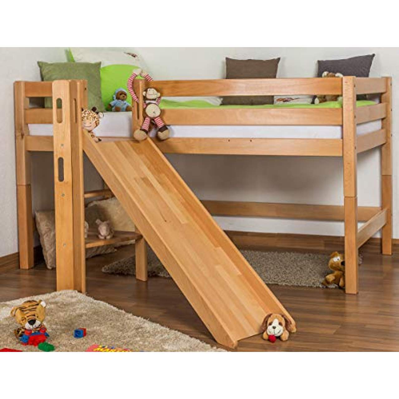 Steiner Shopping Hochbett SamuelKinderbett Hochbett Samuel Buche Vollholz massiv mit Rutsche natur inkl. Rollrost - 90 x 200 cm