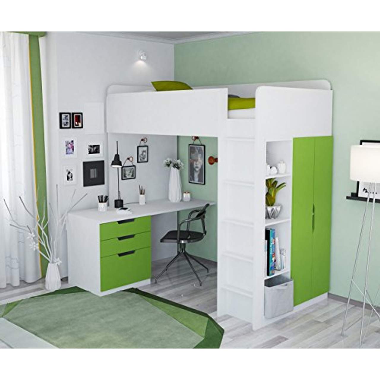 Polini Kids HochbettPolini Kids Kinder Jugend Hochbettkobination mit Kleiderchrank und Schreibtisch in weiß grün