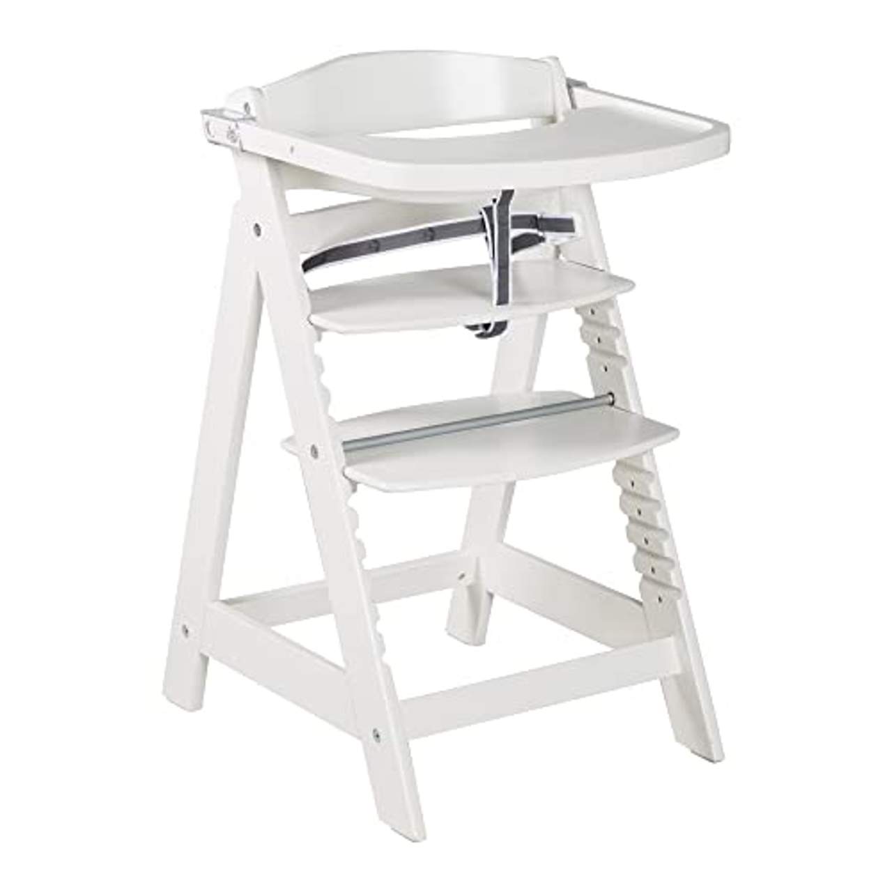 roba Treppenhochstuhl 'Sit Up Click'n'Fun'Mit dem flexiblen Hochstuhl »Treppenhochstuhl Sit Up Click & Fun, weiß« aus Holz von Roba sitzt der Nachwuchs einfach mit am Tisch. Der praktische Kinderstuhl schafft stressfreie Situationen beim Essen oder einfach beim gemütlichen Beisammensein am Tisch. Zusätzliche Sicherheit verschafft das 3-Punkt Gurtsystem in Kombination mit dem Formholzschutzbügel.Für die ideale Sitzposition können sowohl die Sitzfläche als auch die Fußstütze individuell eingestellt werden. Nach dem Essen, bei dem das Kind sicher im Babystuhl sitzt, kann das Essbrett abgenommen werden. Der flexible Hochstuhl »Treppenhochstuhl Sit Up Click & Fun, weiß« aus Holz von Roba ist ein praktischer Helfer im Alltag. Mitwachsend. Sitzbrett verstellbar. Fußbrett verstellbar. Mit Schutzbügel. Mit 3-Punkt-Gurtsystem. Mit abnehmbarem Essbrett. Aufbaumaße B/T/H: ca. 45/54/80 cm. Gewicht ca. 6 kg. Sitzhöhe: ca. 43-55 cm. Max. Tragkraft 50 kg. Material: Holz weiß lackiert. Altersempfehlung: Altersempfehlung ab 6 Monaten.