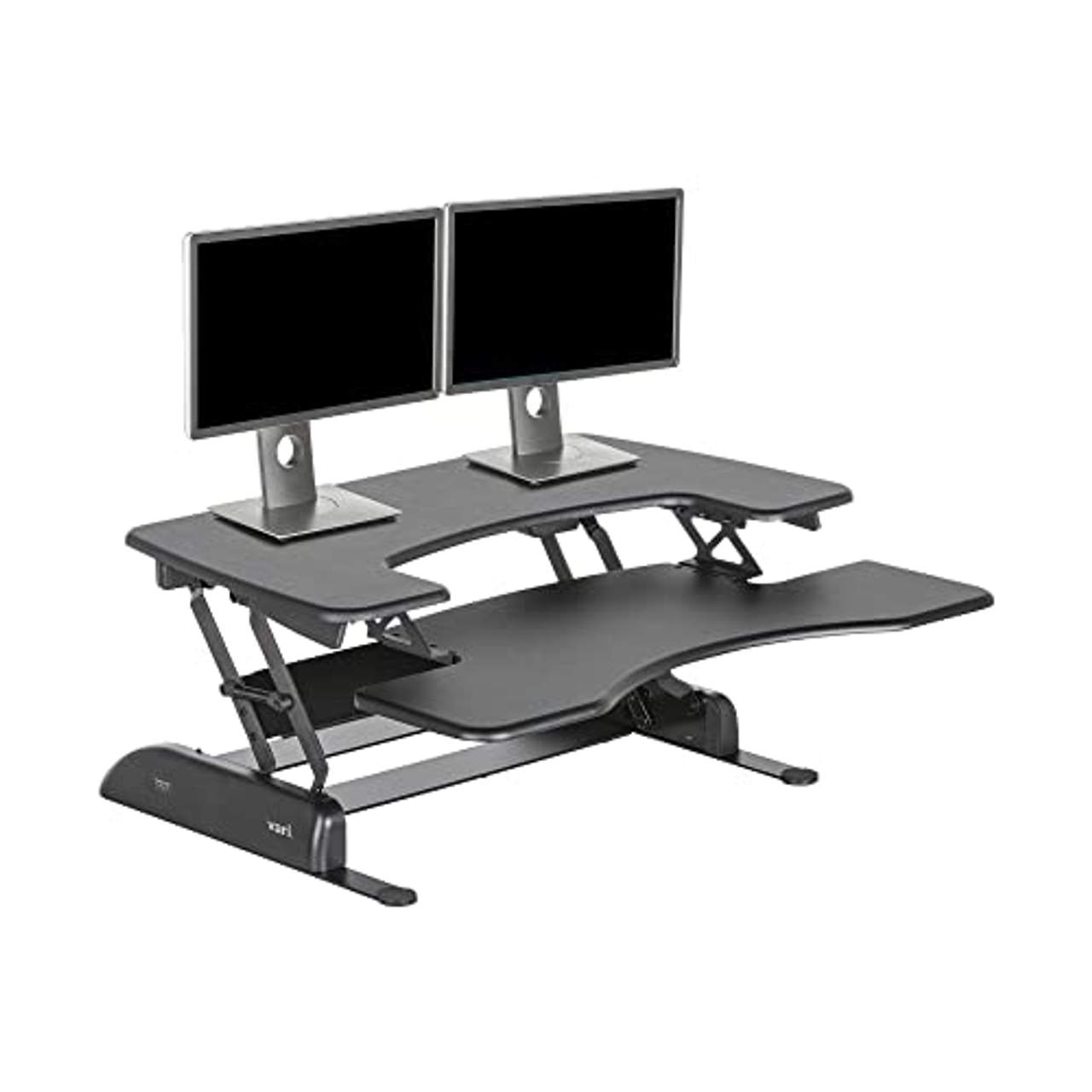 Der VariDesk Pro Plus 36 von Vari ist so konzipiert, dass er eine obere Bildschirmfläche für einen Monitor und eine geräumige untere Fläche für Tastatur und Maus bietet. Er ist die perfekte Lösung für Leute, die zwei Monitore benutzen oder mehr Arbeitsfläche brauchen.