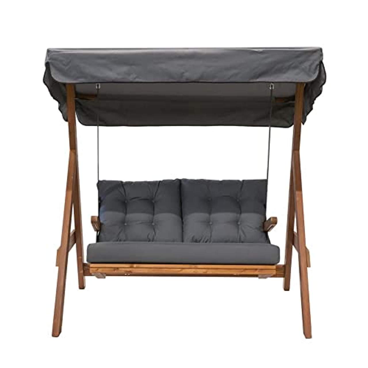 Westmann Hollywoodschaukel Schaukelbank Paris 1700 Anthrazit 160x123x180* Aus massivem, nordeuropäischem Kiefern- und Fichtenholz gefertigt * Tauchimprägnierter Rahmen, korrosionsbeständige Metallteile * Polsterung aus speziellem Outdoor-Gewebe: resistent gegen Schmutz, UV-Strahlung & Feuchtigkeit * Ideale Wahl für alle, die Komfort, höchste Qualität und Ästhetik schätzen * Moderner, hochwertiger Look * Holz aus nachhaltiger Forstwirtschaft Die Westmann Hollywoodschaukel Paris 1700 bietet ein Höchstmaß an Qualität, Komfort und Ästhetik: Der Hauptrahmen ist aus massivem, nordeuropäischem Kiefern- und Fichtenholz gefertigt. Zusätzlich ist das Gestell zum Schutz mit zwei Schichten Holzlack auf Wasserbasis tauchimprägniert.Die Metallteile der Hollywoodschaukel sind elektrostatisch lackiert und korrosionsbeständig. Insgesamt bietet die Sitzfläche genügend Platz für bis zu 2 Personen (max. 300kg). Abdeckung und Polster in edlem Anthrazit komplettieren den modernen, hochwertigen Look der Hollywoodschaukel und sind aus speziellem Outdoor-Gewebe gefertigt, das resistent gegen UV-Strahlen