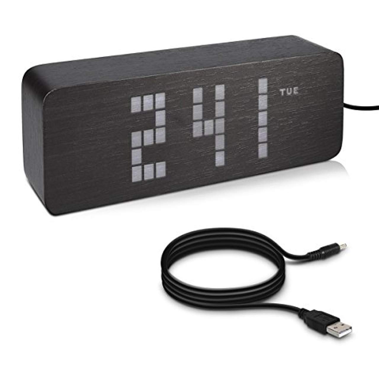 - Umfangreich: Sie erhalten die Tischuhr in Holzoptik mit Weckfunktion, Energiesparmodus, Dimmfunktion und Anzeigen für Uhrzeit, Temperatur und Tag sowie ein USB-Kabel und eine Bedienungsanleitung.