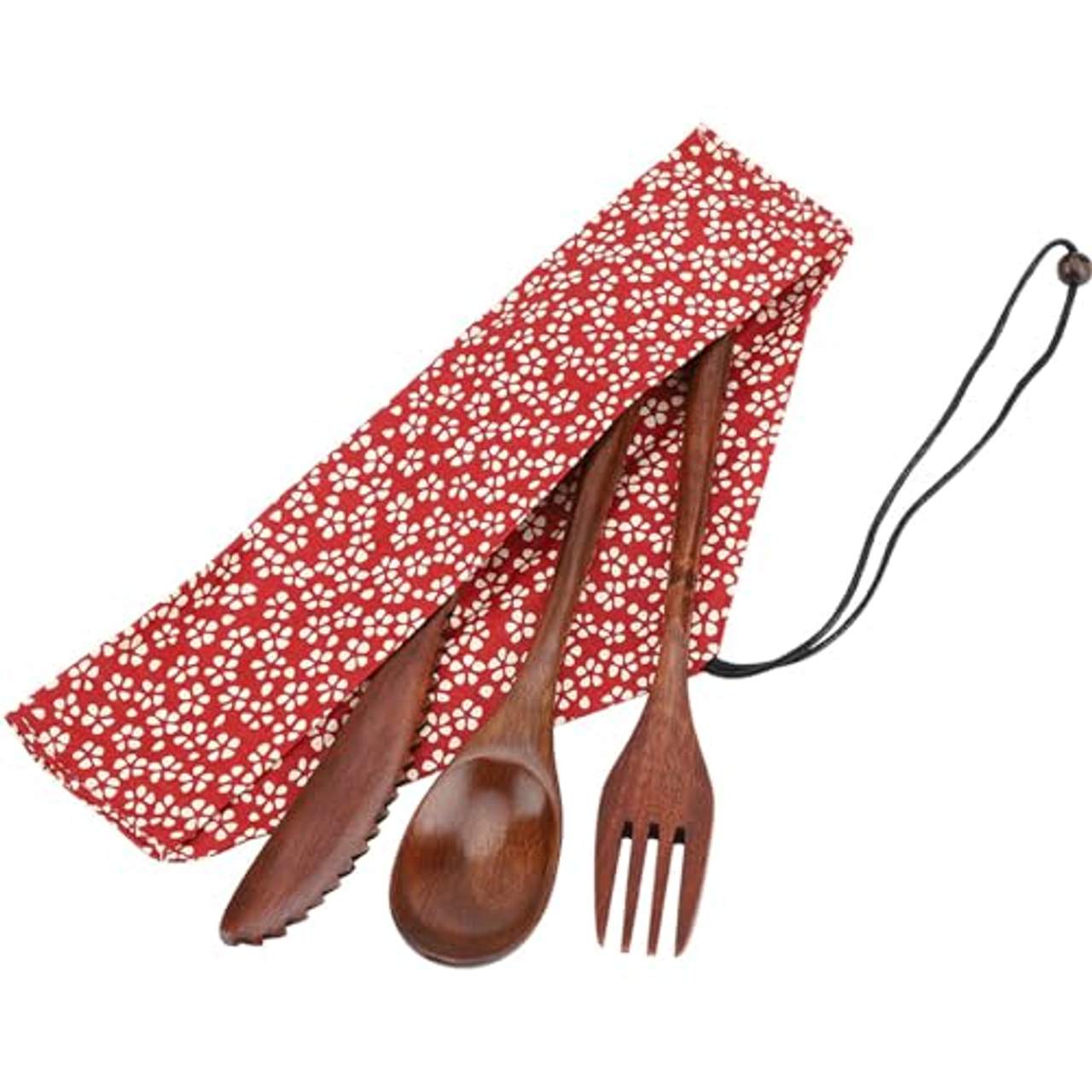 Jedes Set von Duokon Holzbesteck enthält ein Messer, eine Gabel, einen Löffel und eine praktische Aufbewahrungstasche. So hast du alle notwendigen Besteckteile an einem Ort und kannst sie unterwegs leicht mitnehmen. Die kompakte Größe ermöglicht einen mühelosen Transport und passt problemlos in deine Tasche.