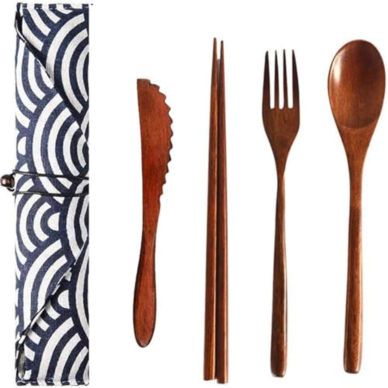Das FDDD Holzbesteck-Set enthält ein Paar Essstäbchen, einen Löffel, eine Gabel, ein Holzmesser und sogar einen praktischen Stoffbeutel zur Aufbewahrung. Dieses umfassende Sortiment deckt die Bedürfnisse der meisten Menschen ab und eignet sich für verschiedene Essanlässe.