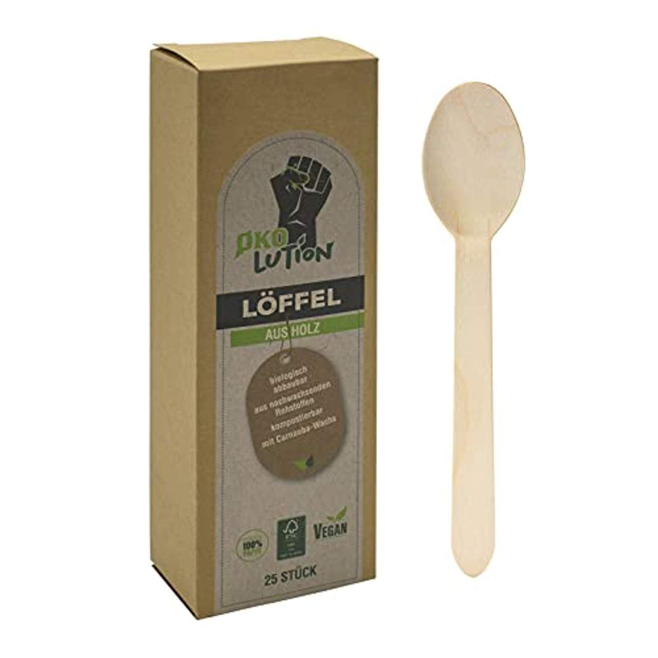 Ökolution Holzlöffel Einweg-Besteck Einweg-Löffel aus Holz ist ein Holzbesteck der Marke „Ökolution“. Es wird aus FSC-zertifiziertem, splitterfreiem Holz hergestellt und ist somit ideal für Veranstaltungen im Freien oder festliche Anlässe. Außerdem ist es umweltfreundlich, da es biologisch abbaubar und kompostierbar ist. Die Packung enthält 25 Einweg-Esslöffel mit einer Länge von 16,5 cm, die geschmacksneutral und stabil sind.
