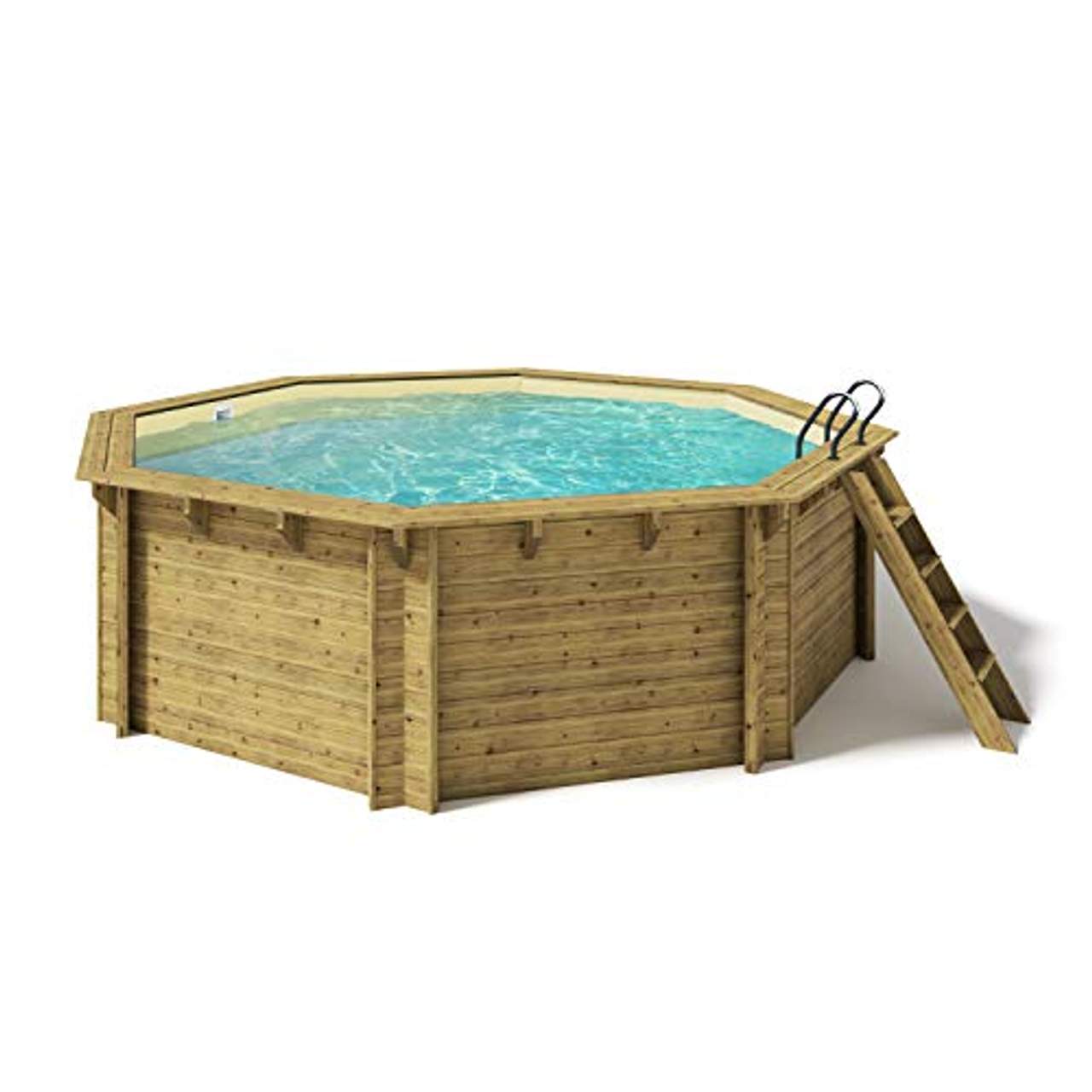 Der Pool besteht aus Kiefernholz, einem langlebigen Material, an dem du lange Freude haben wirst. Das Kiefernholz wird durch eine Vakuumdruckimprägnierung der Klasse 4 behandelt, die es gegen Feuchtigkeit abdichtet und verhindert, dass sich auch in feuchten Umgebungen Schimmel bildet.