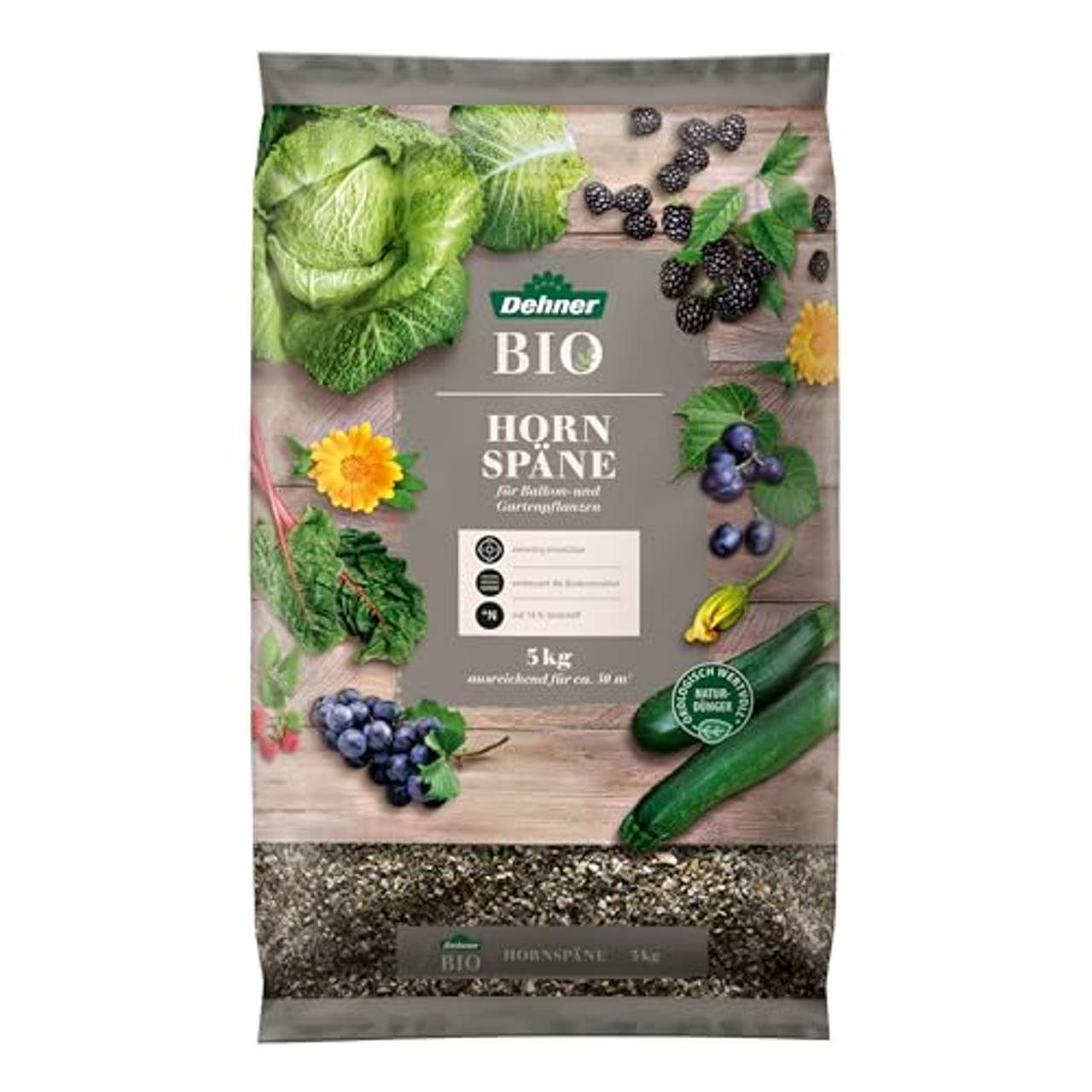 - Organischer Dünger: Die Dehner Bio Dünger Hornspäne ist ein organischer Dünger, das heißt, er enthält keine synthetischen Düngemittel oder Chemikalien. Das macht ihn sicher für den Einsatz in Gärten und rund um Pflanzen und hilft, ein gesundes Bodenmilieu zu fördern.
