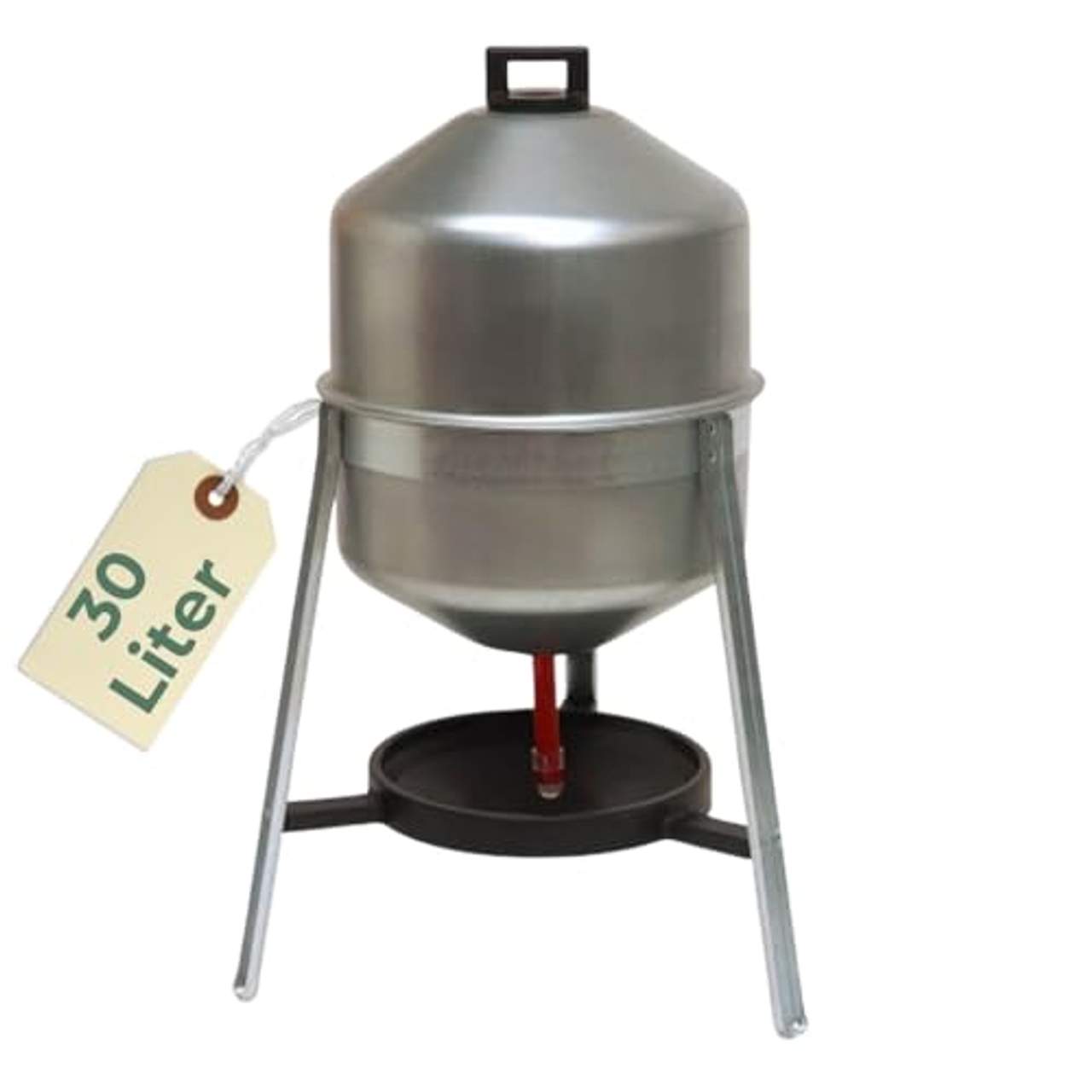 30 L Metall Automatische Geflügel Wasser Siphon Hühner VorratsSiphontränke für Geflügel und weiteren Kleintieren aller Art an mit 30 Litern Inhalt und hochgelegener Trinkschale. Dies verhindert die Verschmutzung des Wassers durch das Scharren des Geflügels. Drei Füße geben der Tränke einen sicheren Stand. - Fassungsvermögen: ca. 30 Liter - von oben befüllbar - Breite Standfüße - Trinkteller ca. 17 cm über dem Boden - Gesamthöhe ca. 70 cm - Behälter aus aus verzinktem Blech Wird zerlegt geliefert und ist mit wenigen einfachen Handgriffen leicht zusammengestellt.