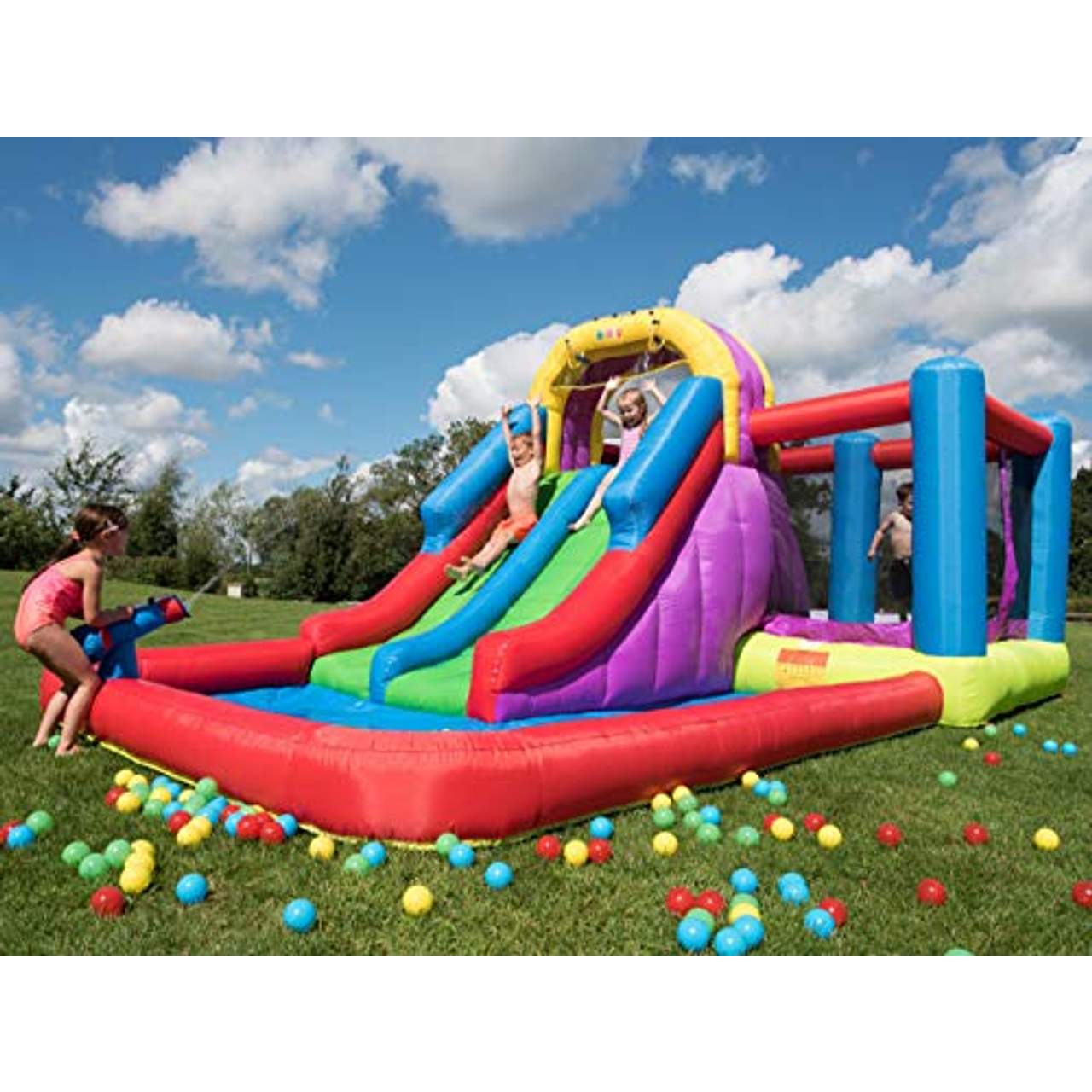 Ungefähre Gesamtmaße 546cm (L) x 300cm (B) x 240cm (H) - Planschbecken 140cm (L) x 240cm (B) x 25cm (D) - 680w Gebläselüfter zum Aufblasen mitinbegriffen - Geeignet für Kinder im Alter zwischen 3-10 Jahren - 38 kg Höchstgewicht pro Kind - 145cm maximale Höhe pro Kind - Maximal 4 Kinder - Maximale Gesamtgewichtskapazität 152kg WICHTIG: Alle Maße sind ungefähre Angaben, wenn der Gegenstand vollständig aufgeblasen wird. Dies ist keine kommerzielle Hüpfburg und ist nicht für die Vermietung geeignet. Die aufblasbaren Produkte von BeBop sind nur für den häuslichen Gebrauch bestimmt. Die Farbe kann leicht von der Abbildung abweichen. Farbübertragungen zwischen hellen und dunklen Farben können sichtbar sein. Auf dem ausblasbaren Produkt können kleine Stiftlöcher sichtbar sein, um Druckpunkte zu entlasten. Bitte beachten Sie, dass, sobald dieses Element aufgeblasen wurde, es als verwendet eingestuft wird und daher nicht für eine Rückerstattung in Frage kommt. Die neuen Modelle von 2017 können farblich leicht von den Bildern auf dieser Seite abweichen.