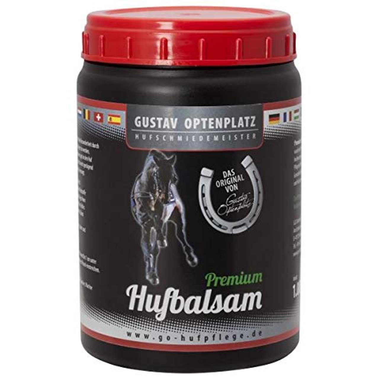 Gustav Optenplatz G.O Gustav Optenplatz GOGustav Optenplatz Hufbalsam Premium Der Gustav Optenplatz Hufbalsam Premium überzeugt durch sein spezielles Herstellungsverfahren, das gezielt auf die Saumlederhaut des Pferdehufes abgestimmt ist und eine optimale Anwendung für jeden Pferdebesitzer ermöglicht. Entdecke eine durchdachte Rezeptur für den täglichen Einsatz.Bewährte Rezeptur für den Pferdehuf Der Gustav Optenplatz Hufbalsam Premium wurde entwickelt, um die besonderen Strukturen des Pferdehufes gezielt zu unterstützen. Die hochwertigen enthaltenen Öle bleiben dank des schonenden Herstellungsverfahrens bestmöglich erhalten. Damit kann der Huf auch bei regelmäßiger Beanspruchung sinnvoll gepflegt werden.Die Hornkapsel erhält eine schützende Barriere gegen äußere Einflüsse. Gleichzeitig bleibt der Feuchtigkeitsaustausch innerhalb des Hufhorns bestehen. Praktische Anwendung im Stall Die Anwendung des Gustav Optenplatz Hufbalsam Premium gestaltet sich einfach und komfortabel im Stallalltag. Der Balsam zieht tief in die Hornstruktur ein und kann dort sein volles Potenzial entfalten.Anwender schätzen die gute Verarbeitbarkeit und die ergiebige Konsistenz. Bei konsequenter Anwendung kann der Huf vor Belastungen wie Stallnässe oder Urin geschützt werden. So wird ein funktionales Hufbild unterstützt. Für alle Pferde geeignet, die eine solide Grundpflege benötigen.Eigenschaften auf einen Blick Die wesentlichen Eigenschaften des Gustav Optenplatz Hufbalsam Premium lassen sich übersichtlich zusammenfassen: * optimierter Feuchtigkeitsaustausch * fördernde Hornkapselfunktion * schützende Barrierewirkung * tiefes Eindringen ins Horn Die Informationen auf dem Produktetikett sind stets zu befolgen. Anwendung: Huf und Hufsohle mit einer Bürste trocken reinigen. Hufsohle und Strahl mit dem Hufbalsam einpinseln, anschließend den Huf von außen mit dem Hufbalsam einstreichen bis ca. 1 cm unter den Kronrand. Das Hufbalsam kann bei Bedarf 1-2 Mal täglich angewendet werden. Vorzugsweise wird das Hufbalsam vor der Boxenruhe aufgetragen, da dann der Huf vor Nässe und Stallmist besser geschützt wird. Die Anwendung des Hufbalsams VOR dem Abspritzen der Hufe lässt das Wasser vom Huf abperlen.