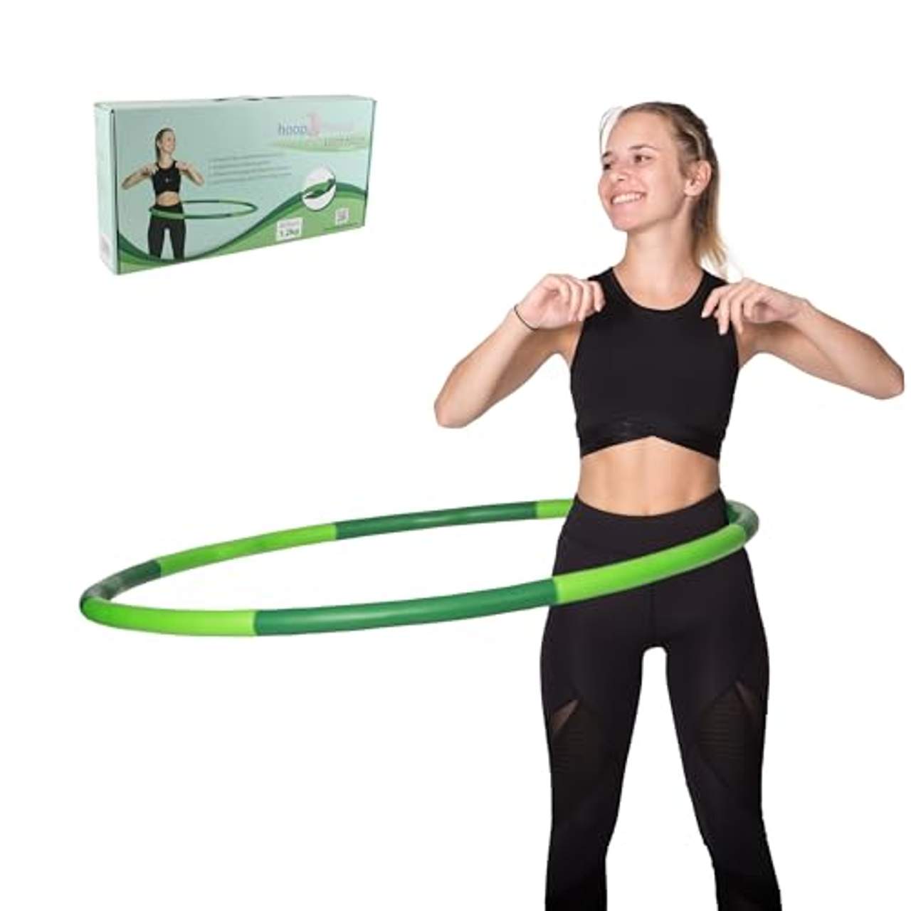 Der hoopomania Light Hoop Grasshooper besteht aus acht Teilen und hat einen Durchmesser von 100 cm. Er wiegt 1,2 kg und fühlt sich damit etwas schwerer an als andere Hula-Hoop-Reifen. Das macht ihn ideal für alle, die ein intensives und effektives Ganzkörpertraining suchen. Außerdem verleiht die leuchtend grüne und hellgrüne Farbgebung diesem ohnehin schon beeindruckenden Produkt einen stilvollen Touch.