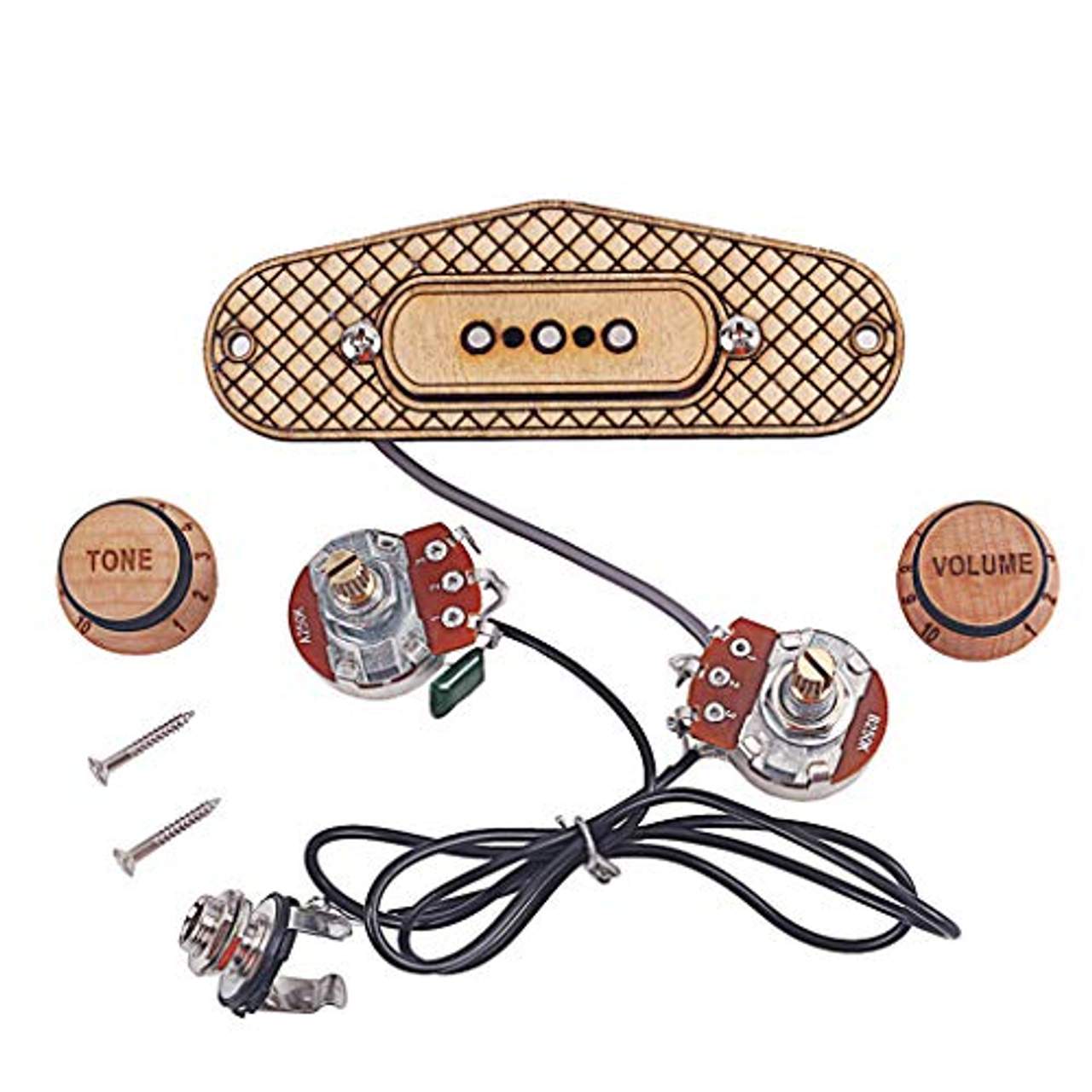 - Anpassbare Steuerung: Das Produkt verfügt über einen Lautstärkeregler und einen Tonregler sowie eine Ausgangsbuchse, mit denen du den Klang des Tonabnehmers individuell anpassen kannst.