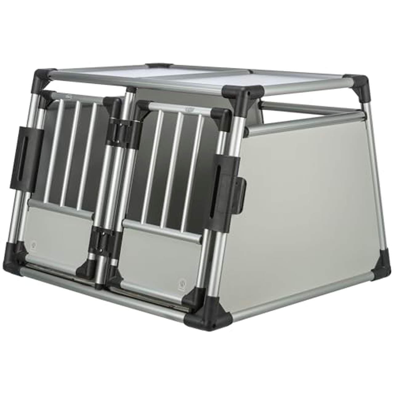 Trixie 39345 Transportbox doppeltAluminium, Hochgeschlossene Wände für einen sauberen Standplatz, Optimale Ausnutzung des Kofferraums durch abgeschrägte Seiten, Tür mit Sicherheitsverschluss, Stabil und geräuscharm