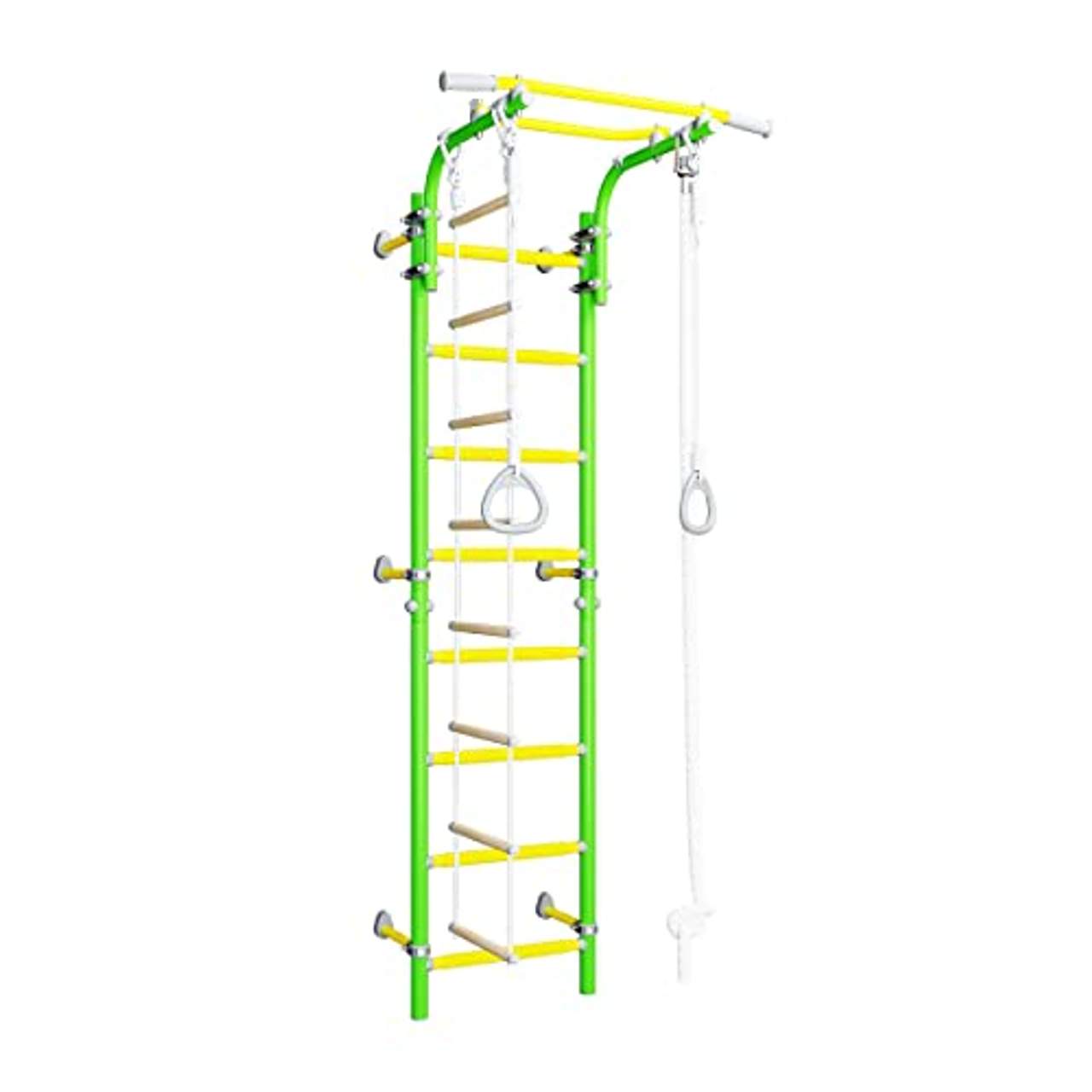 Wallbarz Erwachsene Family 2W Indoor Spiel und KlettergerüstWallbarz Family 2W bzw. Christopeit Hercules 1W Indoor Spiel- und Klettergerüst mit Wandmontage in Weiß-Gelb, EG-KSK-002W Multifunktionales Indoor Spiel- und Klettergerüst mit Sprossenwand, Strickleiter, höhenverstellbarem Reck, Klettertau und Turnringen für Kinder. Aus hochwertigem Metall gefertigt, bringt es Spielspaß und Freude in Ihr Zuhause und bietet Ihren Kindern die Möglichkeit, sich mehr zu bewegen und ihre Geschicklichkeit, Körperbeherrschung und Motorik zu trainieren.MEHR BEWEGUNG FÜR GROß UND KLEIN. Helfen Sie Ihrem Kind dabei, sich körperlich zu entwickeln und stark, flink und geschickt zu werden. Ihr Kind wird anhand von hilfreichen und sicheren Übungen an unseren Heim-Sportgeräten beschäftigt. Dabei werden Ihre Kinder Interesse am Sport entwickeln und bald werden Sie nicht nur stolz auf ihre sportlichen Leistungen werden, sondern auch auf ihre Leistungen in der Schule.Agile Spiele fordern von Kindern, sich geistig und körperlich anzustrengen, bringen Freude und entwickeln gleichzeitig Phantasie.Spiele aktivieren Atmung, Kreislauf und Stoffwechsel, verbessern Beweglichkeit, entwickeln Koordination und Schnelligkeit, Kraft und Ausdauer.Mit unseren Heim-Sportgeräten gehen Sie auf die Bedürfnisse Ihrer Kinder und schaffen eine Atmosphäre des gegenseitigen Verständnisses zwischen Ihnen und Ihren Kindern.AKTIVE Freizeitgestaltung. So sorgen Sie nicht nur um die Familiengesundheit, sondern lassen auch eine wunderbare Beziehung entstehen, die auf Liebe, gegenseitigem Verständnis und Vertrauen beruht.Unsere Experten untersuchten Besonderheiten der Kinder in jedem Alter und entwickelten Heim-Sportgeräte für ihre körperliche und geistige Entwicklung, die im Zeitalter des technologischen Fortschritts und der allgemeinen Computerisierung besonders wichtig sind.Mit unseren Produkten möchten wir Spiel / Spaß und Sport vereinen.