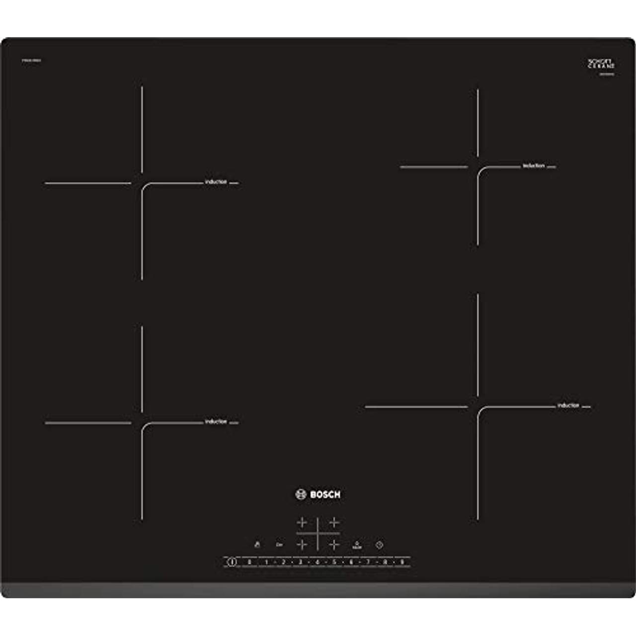 Bosch Serie 6 Einbau-InduktionskochfeldDas BOSCH Induktionskochfeld: Kochen Sie schnell, sauber und sicher mit wenig Energie und unabhängig vom Herdautark =, unabhängig von Herd oder auf vorhandenen Herd / BackofenAusstattungKomfortables Kochen mit 4 Induktions-Kochzonen inkl. PowerBoost für alle KochfelderBedienung mittels DirectSelectDesign Facette vornElektronische Anzeige mit Timer, Ausschalt-FunktionRe Start: Sollte einmal etwas überkochen, schaltet sich das Kochfeld automatisch aus und speichert die zuletzt gewählte Einstellung.Sicherheitsvorrichtungen - Key Lock, Kindersicherung, Sicherheits-Zeitabschaltung, TopferkennungDigitale Restwärmeanzeige je Kochzone17 Leistungs-StufenHighlightsDirect Select: direkte, einfache Auswahl der gewünschten Kochzone, Leistungsstufe und zusätzlicher FunktionenInduktion:Schnelles, präzises Kochen, einfache Reinigung und geringer Energieverbrauch.PowerBoost:Bis zu 50% mehr Leistung für schnelleres Kochen.Timer mit Ausschaltfunktion:Schaltet nach der eingestellten Zeit die zugewiesene Kochzone aus.Topferkennung:Nur der Topf wird erhitzt.Die umliegende Oberfläche bleibt kalt.Kindersicherung:Ist die Kindersicherung aktiviert, können keine Geräteeinstellungen verändert werden.Neustart-Funktion:Zum Zurücksetzen der Gareinstellungen bei versehentlichem Ausschalten.QuickStart-Funktion:Beim Einschalten wählt das Kochfeld automatisch die Kochzone aus, auf dem im ausgeschaltetem Zustand Kochgeschirr aufgesetzt wurde.Wischschutzfunktion:Übergekochte Flüssigkeiten abwischen, ohne die Einstellungen unbeabsichtigt zu ändern (30 Sekunden sind alle Touch-Tasten blockiert).Technische DatenAbmessung HxBxT: 51 x 592 x 522 mmNettogewicht: 12,60 kgmin. Arbeitsplattenstärke: 20 mmElektroanschlusswert: 7,4 kWLänge Netzkabel: 110 cm - liegt beiNischenmaße für Installation (H x B x T) : 51 x 560-560 x 490-500 mm16336