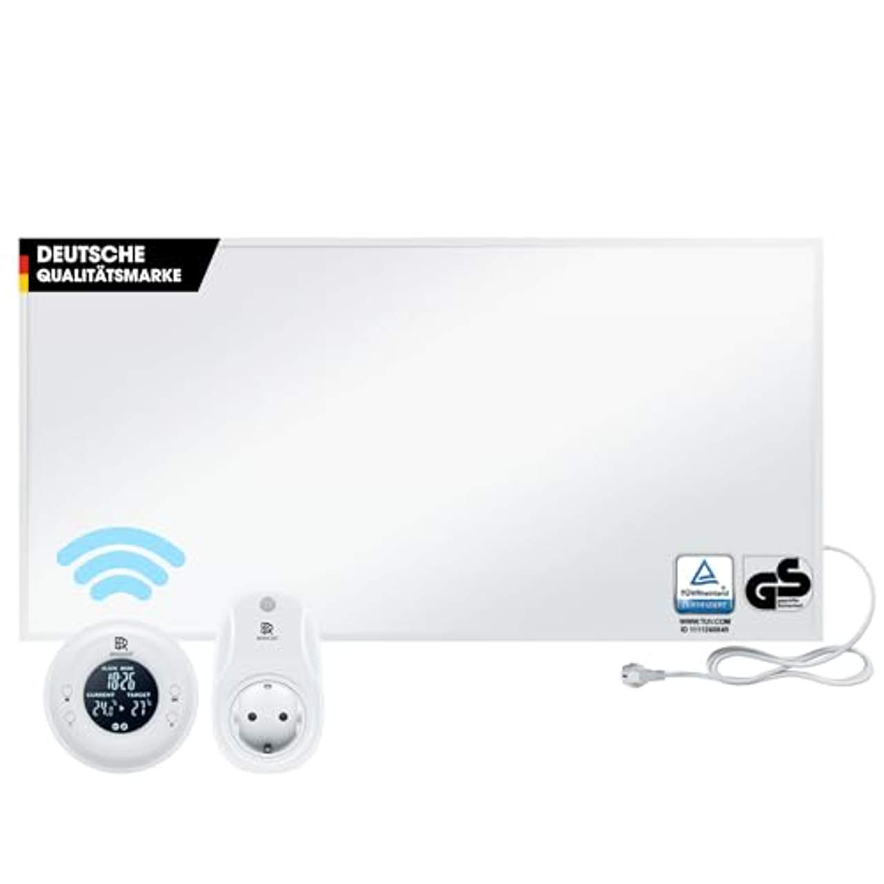 Bringer Infrarotheizung Infrarot ElektroheizungBringer Infrarotheizung 300-1200 Watt, optional mit Thermostat steuerbar via Wifi (App +, Smarthome) oder Fernbedienung Alle Vorteile unserer Infrarotheizung auf einen Blick Einer Schimmelpilzbildungin ihrer Wohnung wird dank gleichmäßiger Wärmeverteilung vorgebeugt Die Intensivität der Infrarotstrahlen ermöglichen ein schnelles Wärmegefühl wie kein anderes Heizsystem Volle Kostenkontrolle durch geringe Anschaffungskosten, wartungsfreien Betrieb und schnelle Aufheizung der Geräte (Reduzierung der Heizkosten) Keine trockene Luft &, staub Aufwirbelung Allergikerfreundlich Ihr persönlicher CO2-Abdruck bleibt neutral, da keine CO2 Abgase freigesetzt werden Sie sind flexibel durch Thermostate mit Wifi Funktion oder Fernbedienung, die Ihnen die komplette Bedienung aus anderen Räumen ermöglicht. Höchste Effizienz durch BRINGER TL Oberfläche, diese sorgt für schnellere und ungehinderte Infrarotabgabe in den Raum im Vergleich zu Pulverbeschichtetem Aluminium BRINGER Infrarotheizungen regen durch Wärmestrahlungen die Durchblutung an, lockern die Muskulatur und können daher z.B. Rückenschmerzen lindern/ Stress abbauen Flaches &, modernes Design Inkl. Montagematerial und deutscher Betriebs-/Montageanleitung Überhitzungs- und Spannungsschutz Aufwertung des Raumklimas Optionen der Infrarotheizung: Verfügbar in 300, 450, 600, 700, 800, 900, 1000 und 1200 Watt Leistung Bringer Infrarotheizungen können als vollwertiges Heizsystemverwendet werden Angebracht an einer Wand fallen die Produkte dank schmaler Konstruktion nicht auf (auch geeignet für Feuchträume wie z.B. das Badezimmer) Thermostat mit Fernbedienung (BRTF) - höchste Effizienz durch die Automatische Abschaltfunktion bei erreichen der Wunschtemperatur &, einer frei konfigurierbaren Zeitschaltuhr. Wifi Thermostat (BRTW) - durch das Wifi Thermostat können Sie Ihre BRINGER Infrarotheizung bequem via App steuern und einrichten, zudem können Sie Ihr Smart Home eigenständig mit Hilfe von „,Skills“, an Ihr System (Alexa uvm.) anpassen und mit Anweisungen steuern.(Zurzeit wird nur 2.4GHz WLAN unterstützt.) Im Lieferumfang enthalten: Bringer Infrarotheizung Montagematerial (Schrauben &, Dübel) deutscher Betriebs-/Montageanleitung Ermittlung Ihres Bedarfs (Max. m² Wärmedämmstandard 2018) 300 Watt =, 7 m² (60x60cm) 450 Watt =, 10 m² (60x80cm) 600 Watt =, 12 m² (60x100cm) 700 Watt =, 15 m² (60x100cm) 800 Watt =, 18m² (60x100cm) 900 Watt =, 20 m² (60x100cm) 1000 Watt =, 22 m² (60x120cm) 1200 Watt =, 24 m² (60x120cm) (in einem Feuchtraum verdoppelt sich die Wattanzahl) Strahlungsweite: ca. 3,5m Vor Benutzung bitte die Anleitung lesen.