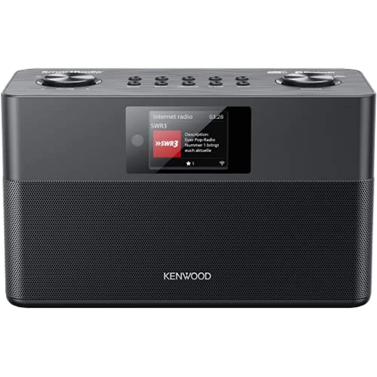 Kenwood CR-ST100S-B Smart-Radio mit InternetradioSmart-Radio mit DAB+, Internetradio, UKW, Bluetooth, USB und TFT-Farbdisplay6,1 cm großes TFT-FarbdisplayInternetradio per WiFiDAB+ und UKW RDS-EmpfängerSpotify Connect20 Presetsstationen / 10 Spotify-PresetsBluetooth-Audiostreaming (A2DP) zur Wiedergabe von Smartphone oder TabletUhrfunktion inkl. Wecker und Sleeptimerfernbedienbar per Smartphone-App UNDOKUSB und Line-In-Anschluss (3,5 mm)Line-Out Anschluss (3,5 mm)Verstärker mit 2 x 10 W RMSBassreflex Stereo-LautsprecherIR-Fernbedienung im LieferumfangSmartradio – Der Radio-Spezialist für alle PlattformenEgal ob Sie ihren Lieblings Radio-Sender ganz klassisch über UKW, das neue Digitalradio DAB+ oder per Internet-Stream hören wollen, das CR-ST100S unterhält sie auf allen Kanälen bestens! Mit diesen drei Empfangswegen findet man ganz sicher den perfekten Sender für jeden Geschmack!Mehr Radio mit DAB+DAB+ ist der Radiostandard von heute: digitale Klangqualität und große Programmvielfalt voll und ganz genießen. Das Smart Radio CR-ST100S bietet neben dem Empfang von Internetradio und analogen UKW-Sendern die Möglichkeit, die in Deutschland mittlerweile schon bald 250 digitalen Radioprogramme der DAB+ Stationen zu empfangen.Spotify, Bluetooth, USB , Line-In für den individuellen HörgenussWenn es statt dem Radioprogramm einmal die ganz persönliche Playlist sein soll ist auch das kein Problem! Das CR-ST100S kann dank Spotify Connect direkt als Ausgabegerät bei Spotify ausgewählt werden. Der populäre Streamingdienst ist damit perfekt eingebunden, das Smartphone dient als übersichtliche Fernbedienung.Alternativ dazu können auch andere Quellen vom Handy per Bluetooth Audio-Streaming wiedergegeben werden oder die MP3 Musiksammlung auf einem USB-Stick direkt über den Audio-Player des CR-ST100S abgespielt werden. Ganz klassisch per Klinken-Kabel kann das CR-ST100S auch per Line-In und Line-Out mit anderen Komponenten verbunden werden.Eindrucksvoller SoundTrotz seiner kompakten Bauform spielt das CR-ST100S in puncto Klang bei den ganz großen mit! Im nur knapp 25cm breiten und 15cm hohen Gehäuse arbeitet ein Stereo Lautsprechersystem mit Bassreflex -Abstimmung und einer RMS Verstärkerleistung von „echten“ 2 x 10 Watt. Diese Leistung setzt das CR-ST100S in einen satten Sound mit sehr erwachsenem Bass-Fundament um und weiß so bei allen Musikrichtungen zu gefallen. An den individuellen Hörgeschmack kann der Sound dank integriertem Equalizer ebenfalls angepasst werden.Wecker und Co.Auf dem großen Farbdisplay kann die Uhr ganz klassisch analog oder besonders gut lesbar digital dargestellt werden.Wer das Radio im Schlafzimmer nutzen möchte kann das Display selbstverständlich entsprechend dimmen. Ein Wecker mit verschiedenen Weckzeiten sorgt morgens mit einer individuell wählbaren Quelle für gute Laune beim Aufstehen, am Abend kann der einfach und schnell programmierbare Sleeptimer so eingestellt werden, dass sich das Gerät automatisch nach einer gewissen Zeit ausschaltet.Klares Bedienkonzept trotz beeindruckendem FunktionsumfangAm Gerät selber sorgen zwei große Drehknöpfe für eine intuitive Bedienung:Ein Knopf zum Regeln der Lautstärke, der andere um durch die übersichtlichen Menüs zu navigieren. Diese werden gut ablesbar auf dem Farb-TFT-Display dargestellt und können in verschiedenen Landessprachen angezeigt werden. Neben den klar zugeordneten Funktionstasten und den Stations-Tasten oben auf dem Gerät können alle Funktionen auch ganz bequem mit der beiliegenden Fernbedienung oder per kompatiblem Smartphone und der kostenlosen App „UNDOK“ gesteuert werden.