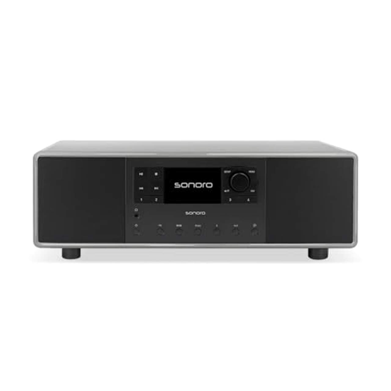 sonoro Primus Internetradio mit BluetoothReduziertes Design trifft dynamischen Sound. Das klassische sonoro Design des PRIMUS ist ein repräsentativer Hingucker, fügt sich dennoch harmonisch in jeden Einrichtungsstil im Wohnzimmer ein. Dank des 2.1 Lautsprechersystems mit integriertem 5,25 Zoll Hochleistungs-Subwoofer überzeugt der PRIMUS nicht nur bei den leisen Tönen, sondern bietet auch Raum für den großen Klang. Dabei bleibt er trotz der großen Vielfalt an Anschlüssen, Funktionen und Musikquellen stets unkompliziert und einfach zu bedienen – nicht zuletzt durch die praktischen Direktwahltasten an der edlen Front aus Vollmetall. Für Musikliebhaber, die kraftvollen Klang, edles Wohndesign, moderne Technik und einfache Bedienung lieben, ist der PRIMUS das Design-Audiosystem der Wahl.