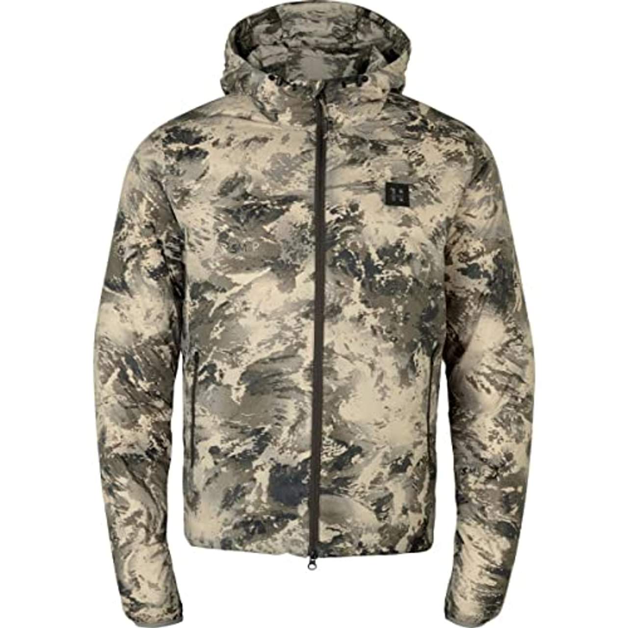Härkila Mountain Hunter Expedition packable Down JackeDie Mountain Hunter Expedition Packable Down Jacket ist eine packbare Jacke, die perfekt für die wechselnden Belastungen und Wetterbedingungen in den Bergen geeignet ist. Ein ernsthafter Bergjäger muss sowohl in leichter Kleidung, die hohe Atmungsaktivität und optimale Bewegungsfreiheit bietet, die Berge erklimmen, als auch warm halten, wenn er längere Zeit völlig still sitzt und die Berghänge über und unter sich betrachtet.Die Jacke ist mit wasserabweisender Daune gefüllt, die ein hohes Maß an Isolierung bietet, aber keine Feuchtigkeit aufnimmt. Die Jacke ist leicht und klein verpackbar, d.h. sie kann beim Wandern und auf der Pirsch in eine eigene Tasche gepackt und in den Rucksack gesteckt werden, ohne dass sie viel Platz wegnimmt, und dann angezogen werden, wenn man nicht weitergeht.Die Jacke verfügt außerdem über Handwärmertaschen, einen verstellbaren unteren Saum und eine integrierte, verstellbare Kapuze, damit Sie auch in großen Höhen und unter schwierigen Bedingungen warm und komfortabel bleiben. Die Jacke ist mit unserem AXIS MSP Mountain-Tarnmuster ausgestattet, damit Sie sich perfekt in Ihre felsige Umgebung einfügen, egal ob Sie sich über oder unter der Baumgrenze befinden.Material: 100% Polyester