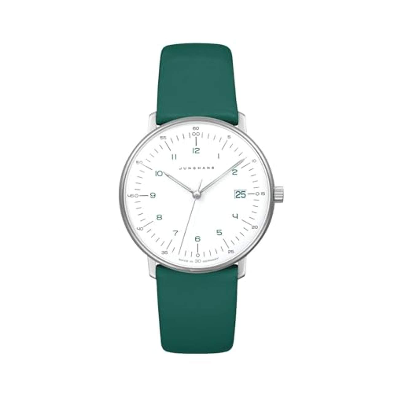 - Elegantes Design: Die Uhr hat ein elegantes, mattweißes Zifferblatt, das von grünen Ziffern und feinen grauen Indizes ergänzt wird und so eine anspruchsvolle Ästhetik schafft, die den modernen Geschmack trifft. Das Leuchtmaterial auf den Stunden- und Minutenzeigern verbessert die Ablesbarkeit bei schlechten Lichtverhältnissen und sorgt für ein schickes Erscheinungsbild sowohl bei legeren als auch bei formellen Anlässen. Dieses stilvolle Design macht die JUNGHANS max Bill Damen-Armbanduhr nicht nur zu einem funktionalen Accessoire, sondern auch zu einem Statement-Stück, das jedes Outfit aufwertet.