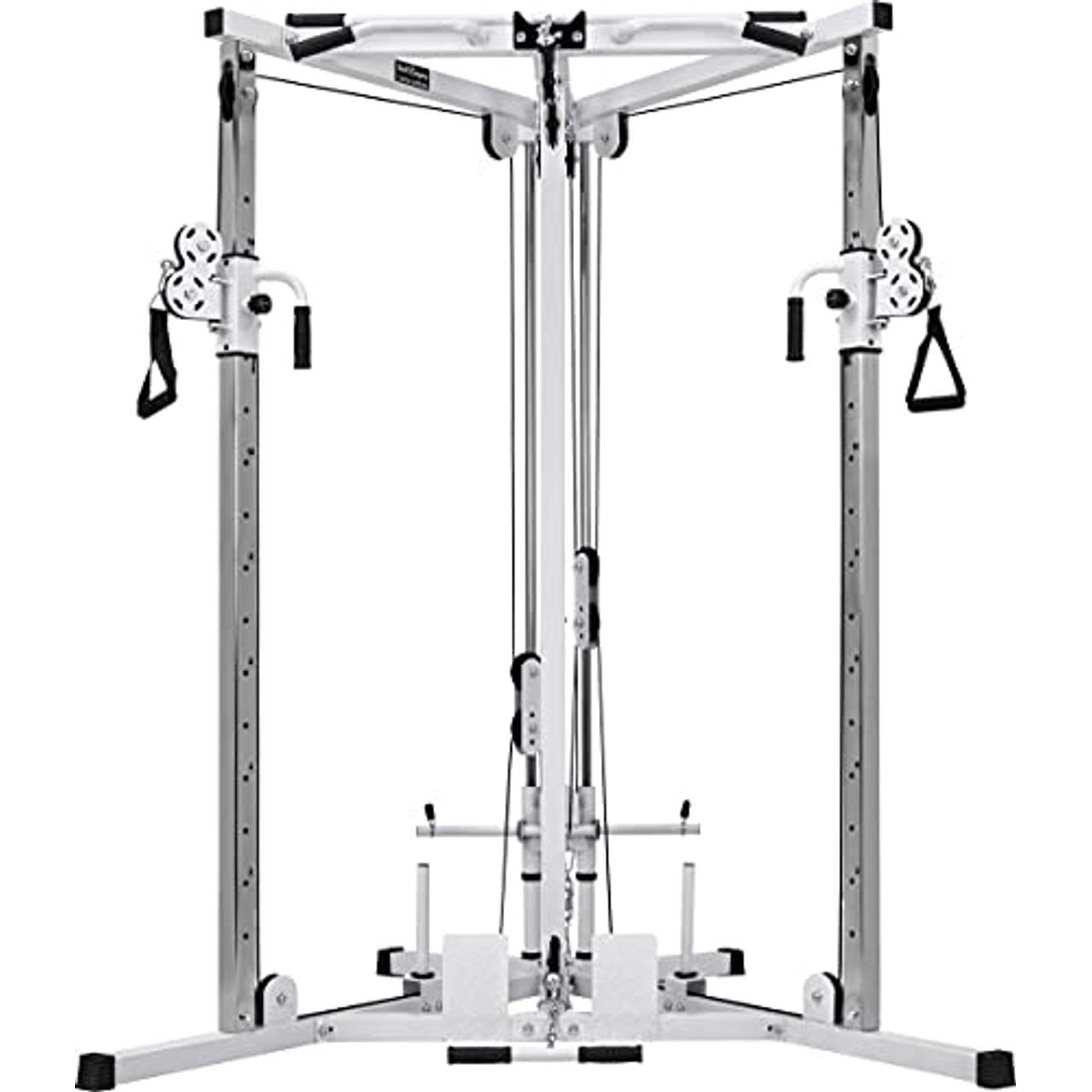 - Praktisches Design: Der verstellbare Kabelzug in Kombination mit der eingebauten Klimmzugstange ist ein optimales Trainingsgerät für den Aufbau der Oberkörpermuskulatur. Die Griffe sind gummiert für einen sicheren Halt und um ein Abrutschen zu verhindern.